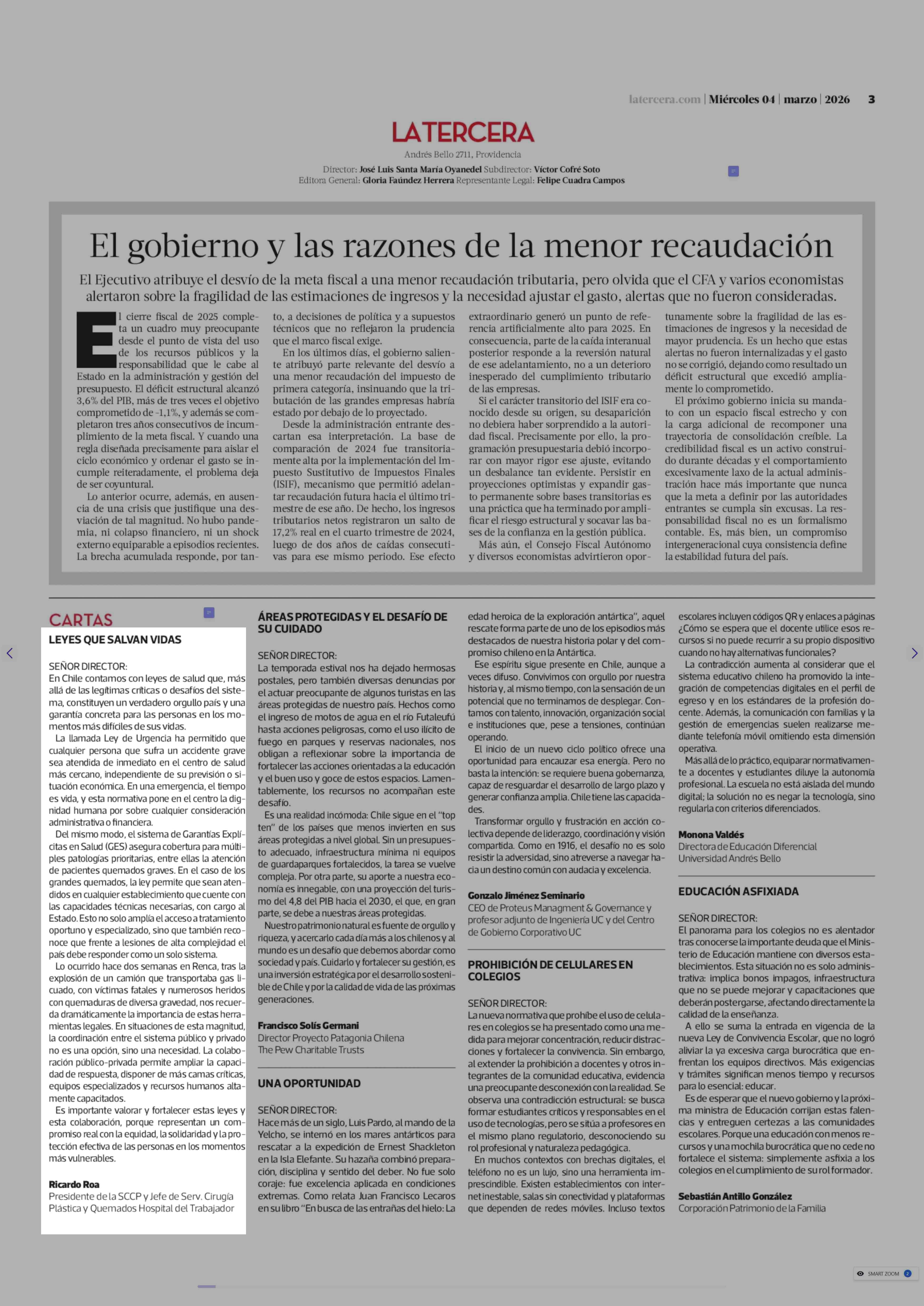 CARTAS: LEYES QUE SALVAN VIDAS 04-03-2026 La Tercera |