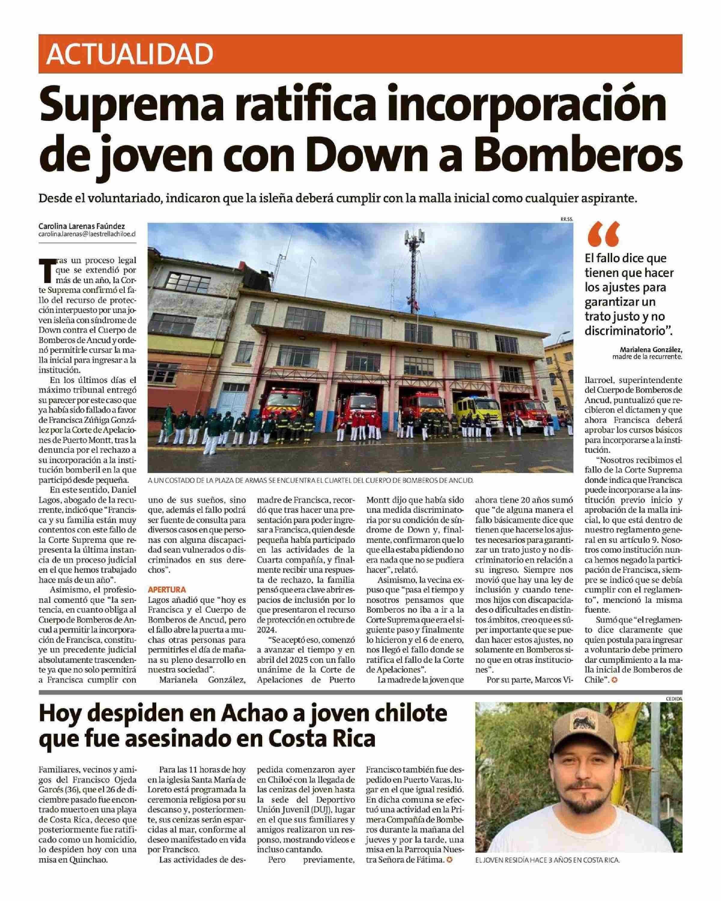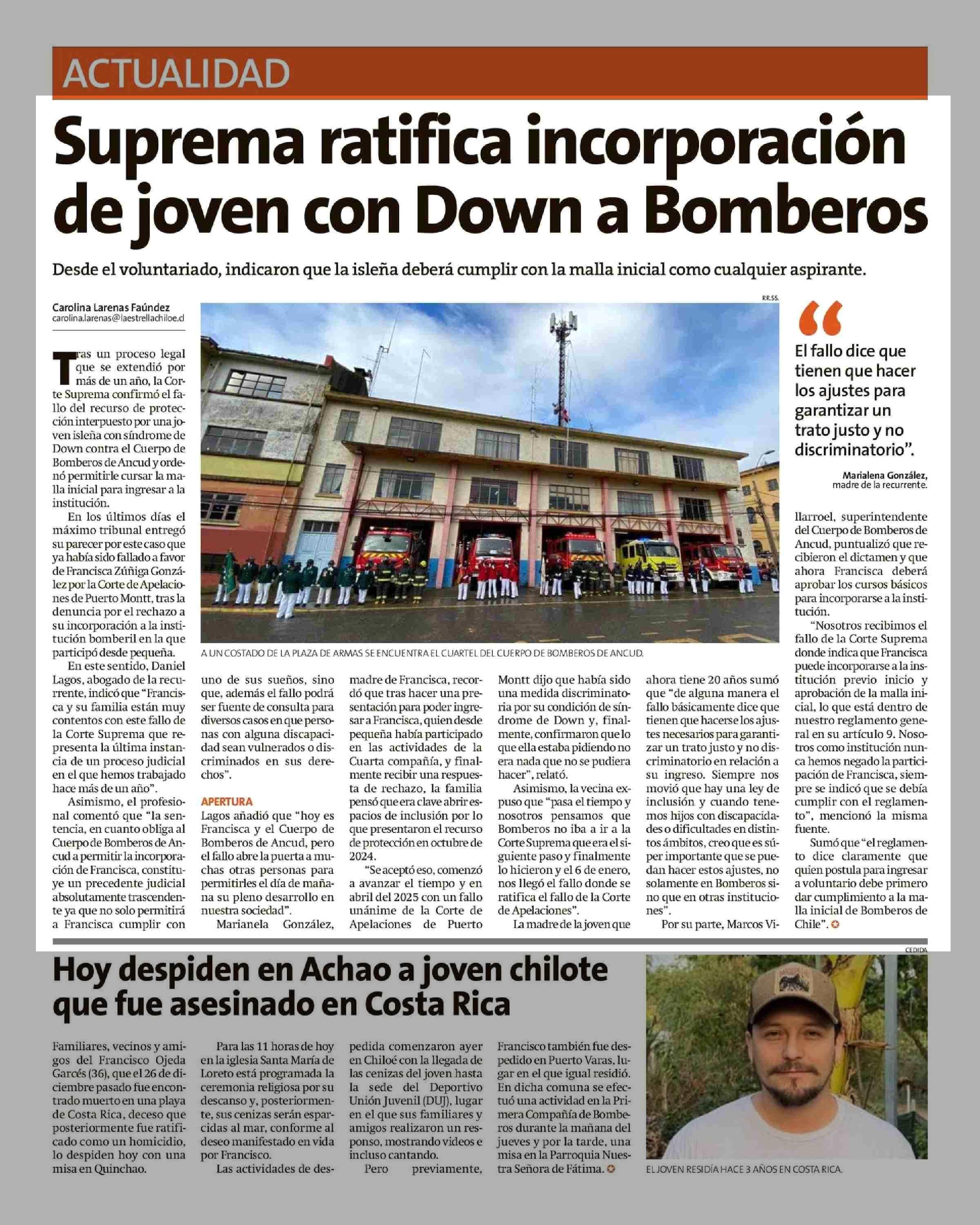 Título: Suprema ratifica incorporación de joven con Down a Bomberos