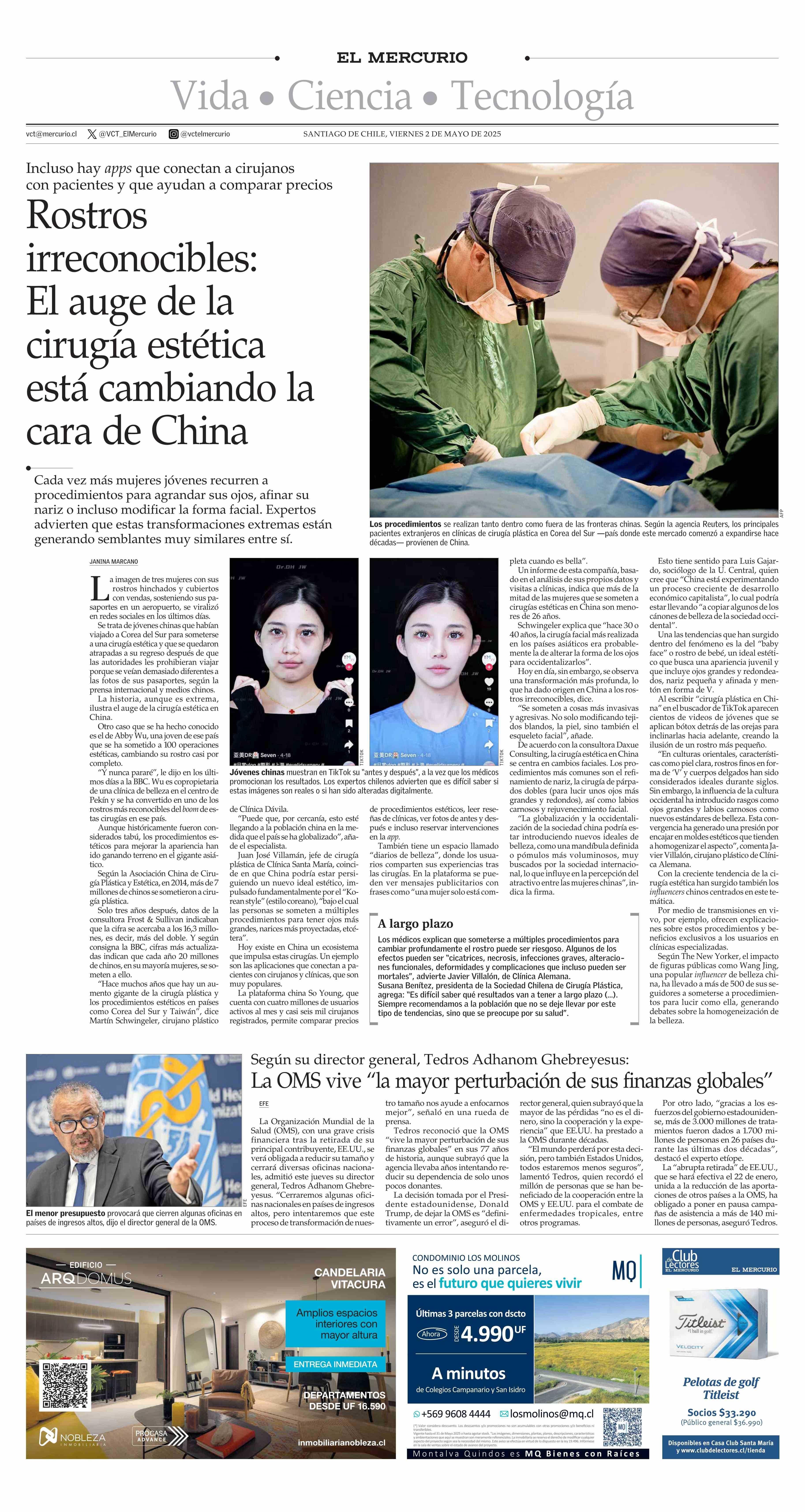 Rostros irreconocibles: El auge de la cirugía estética está cambiando la cara de China 02-05-2025 El Mercurio |