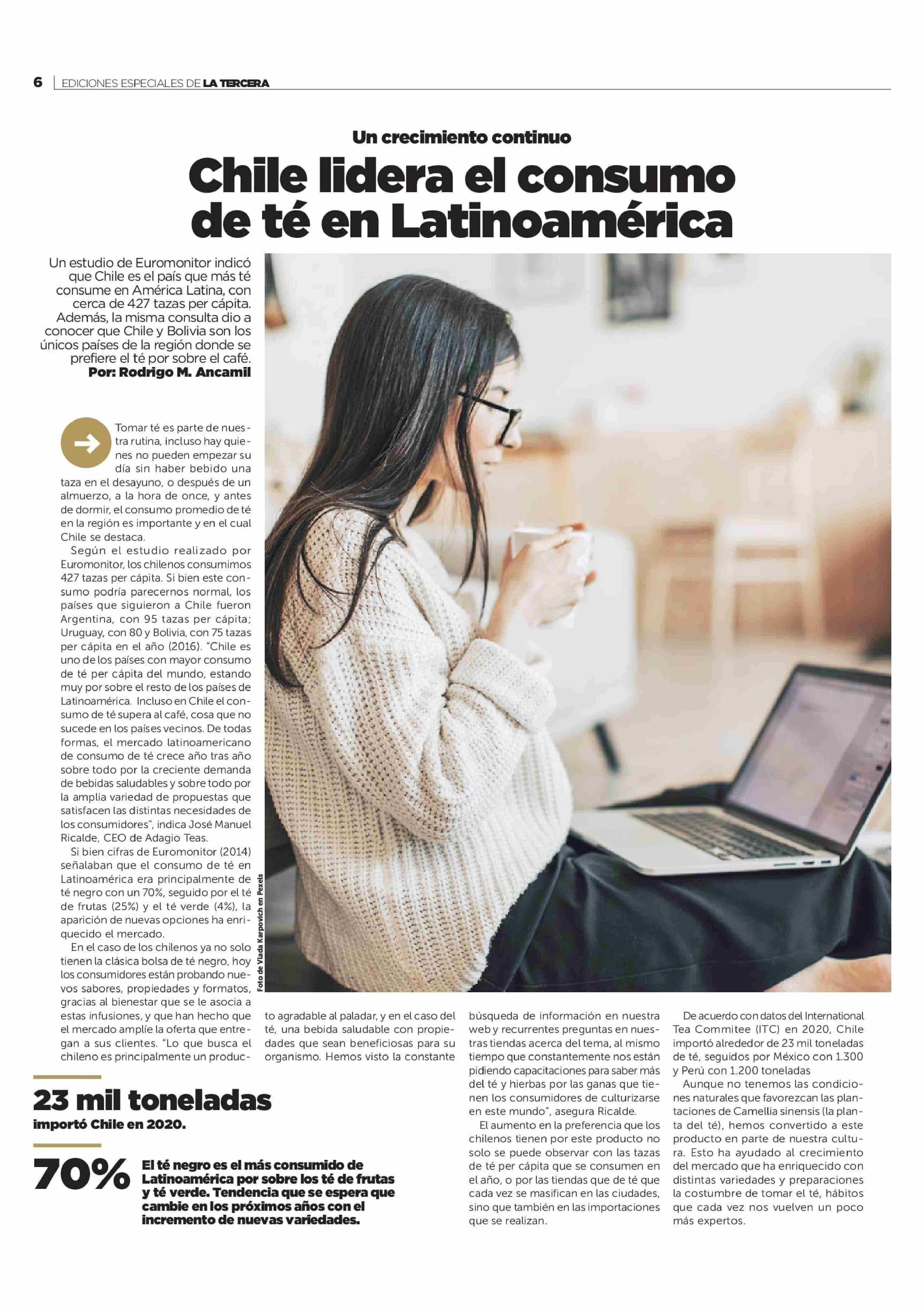 Chile lidera el consumo de té en Latinoamérica 21-05-2023 La Tercera |