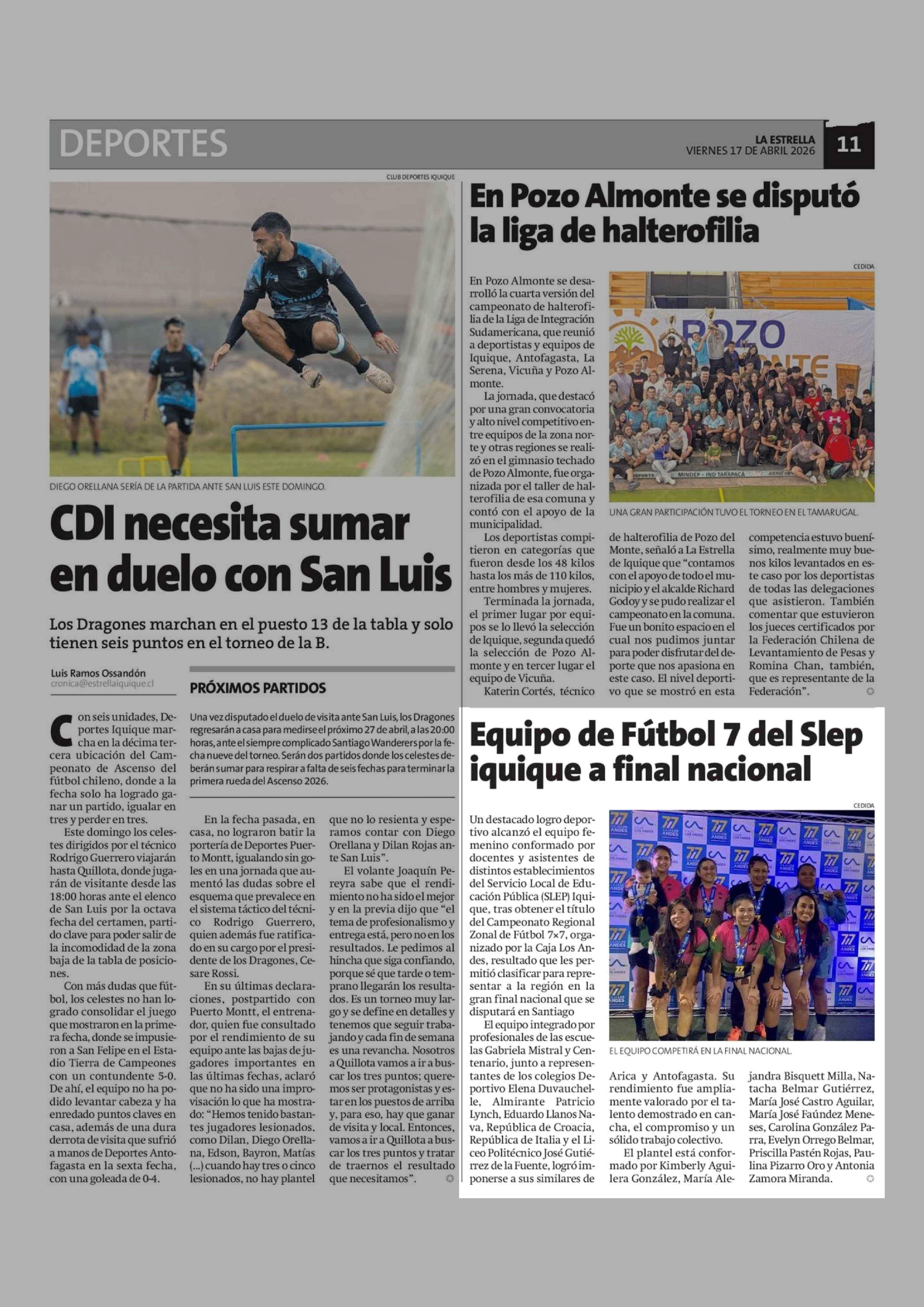 Equipo de Fútbol 7 del Slep iquique a final nacional 17-04-2026 La Estrella de Iquique |