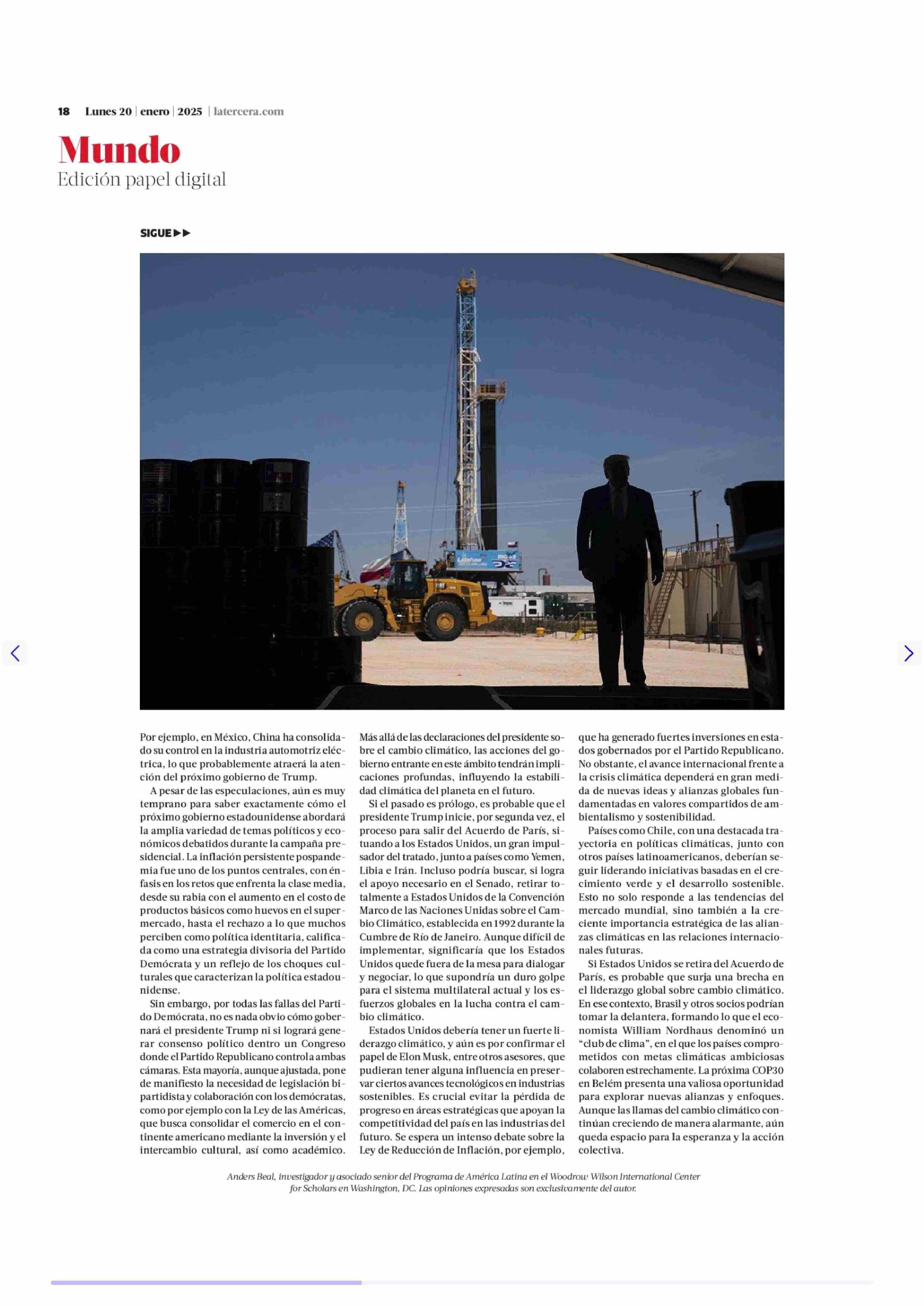 Trump y las llamas de la crisis climática: ¿Qué esperanza queda para la cooperación internacional? 20-01-2025 La Tercera |