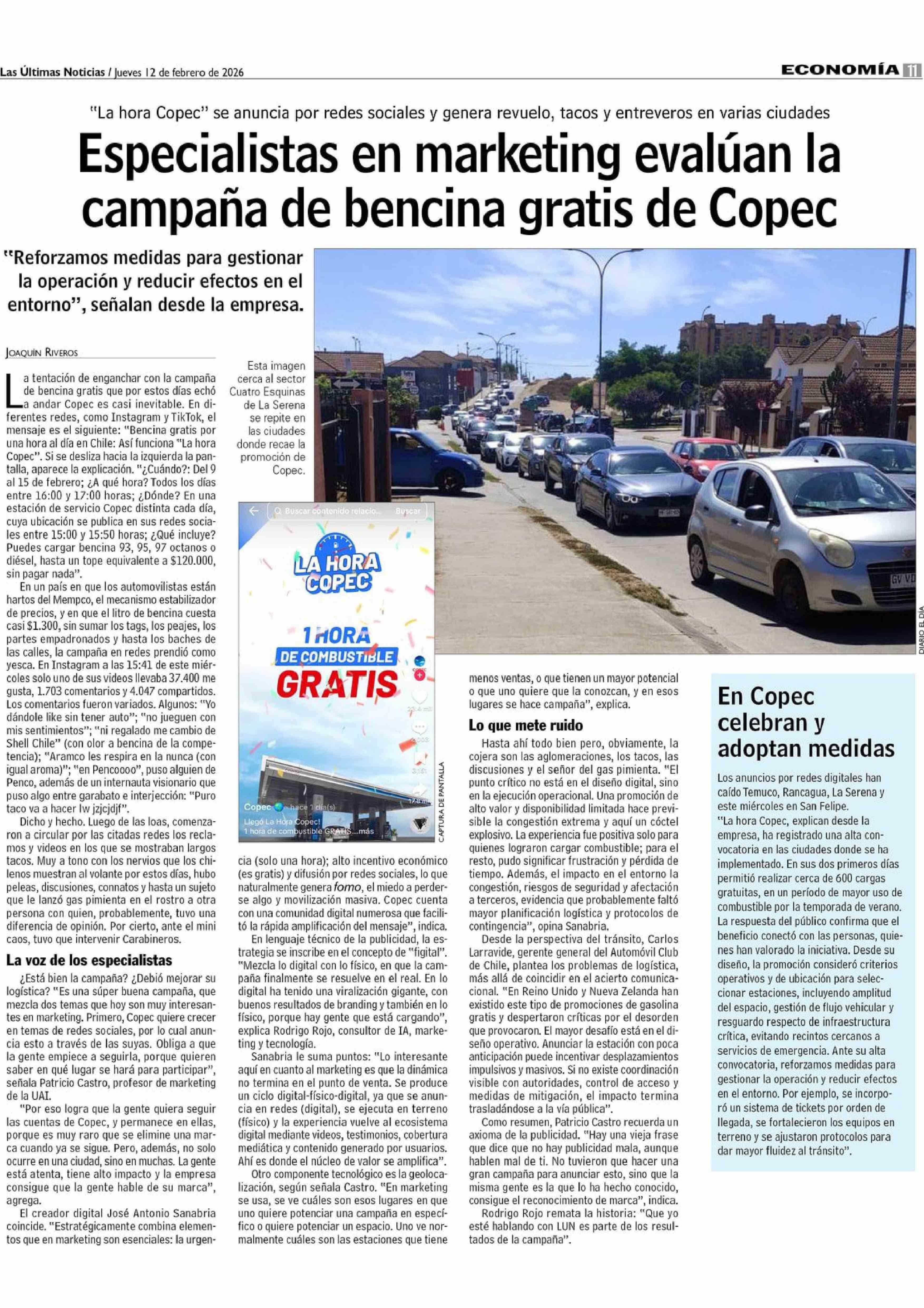 Título: Especialistas en marketing evalúan la campaña de bencina gratis de Copec