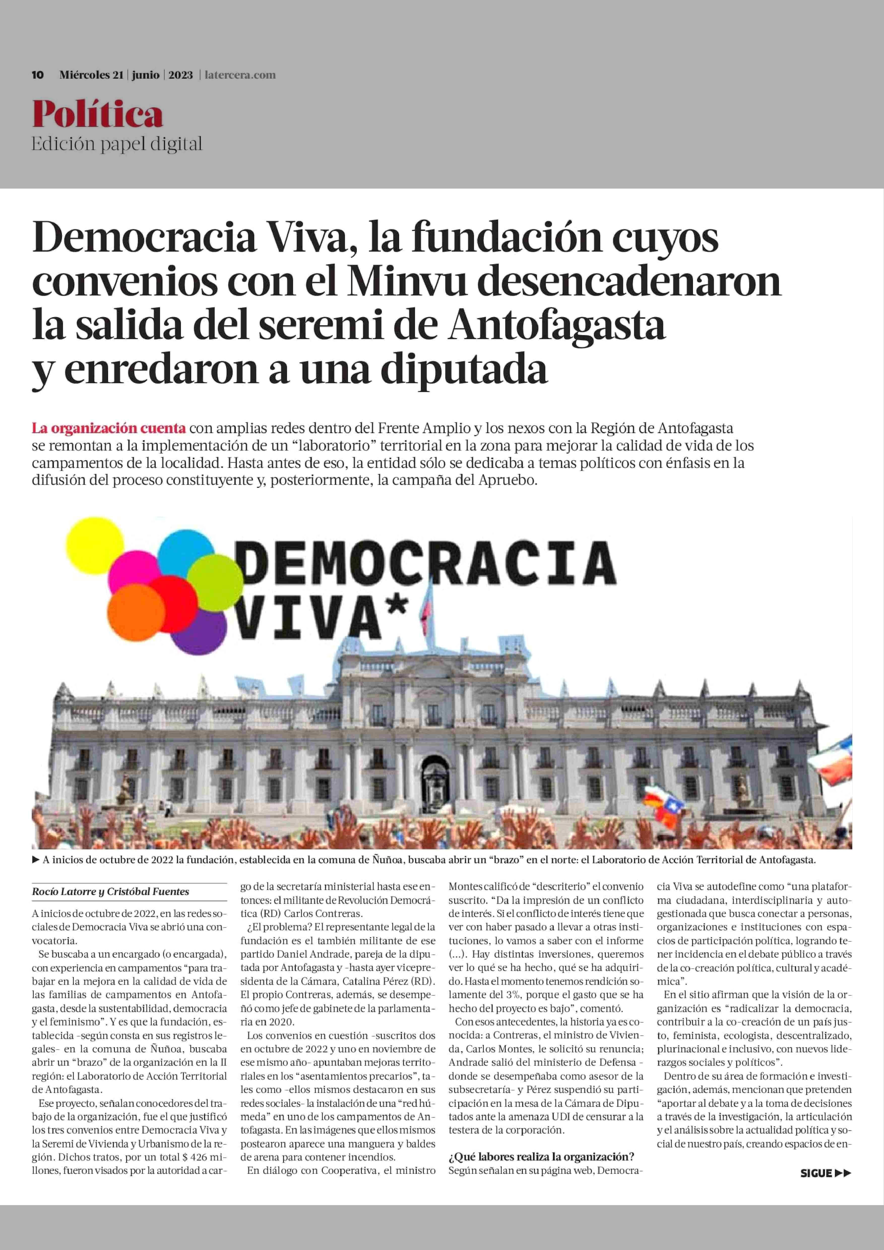 Título: Democracia Viva, la fundación cuyos convenios con el Minvu desencadenaron la salida del seremi de Antofagasta y enredaron a una diputada
