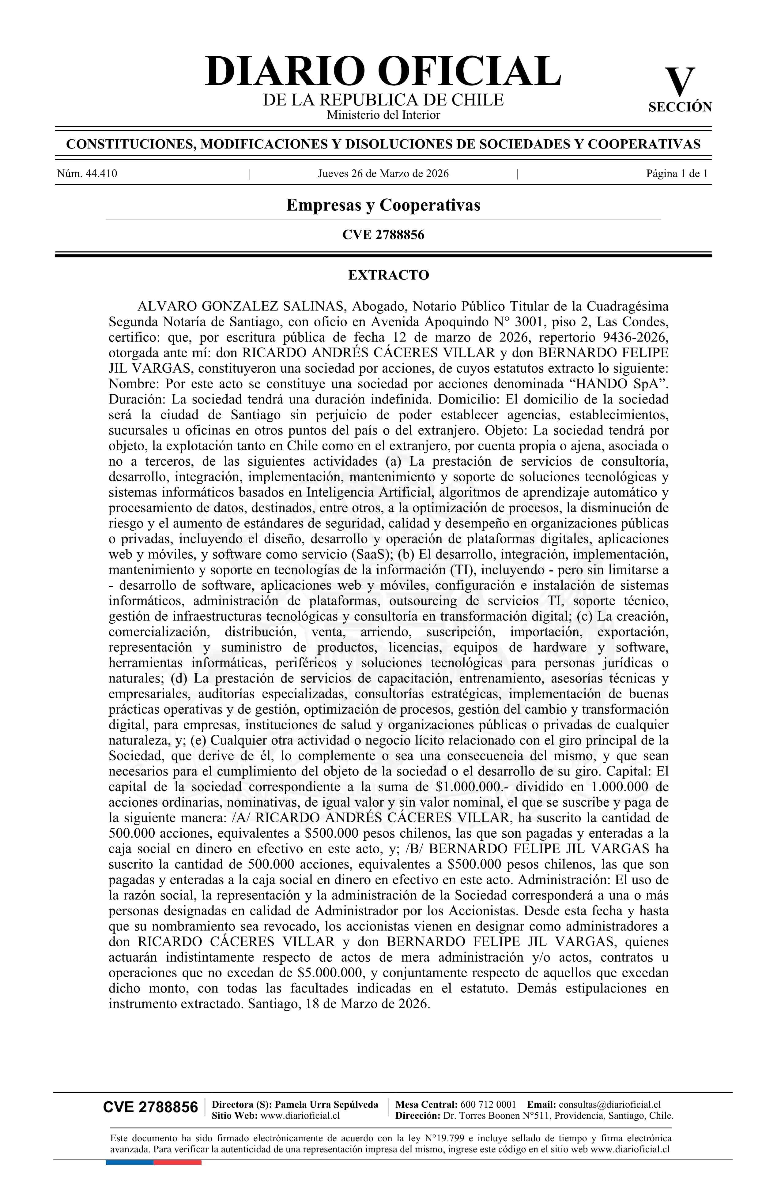 Título: HANDO SpA
