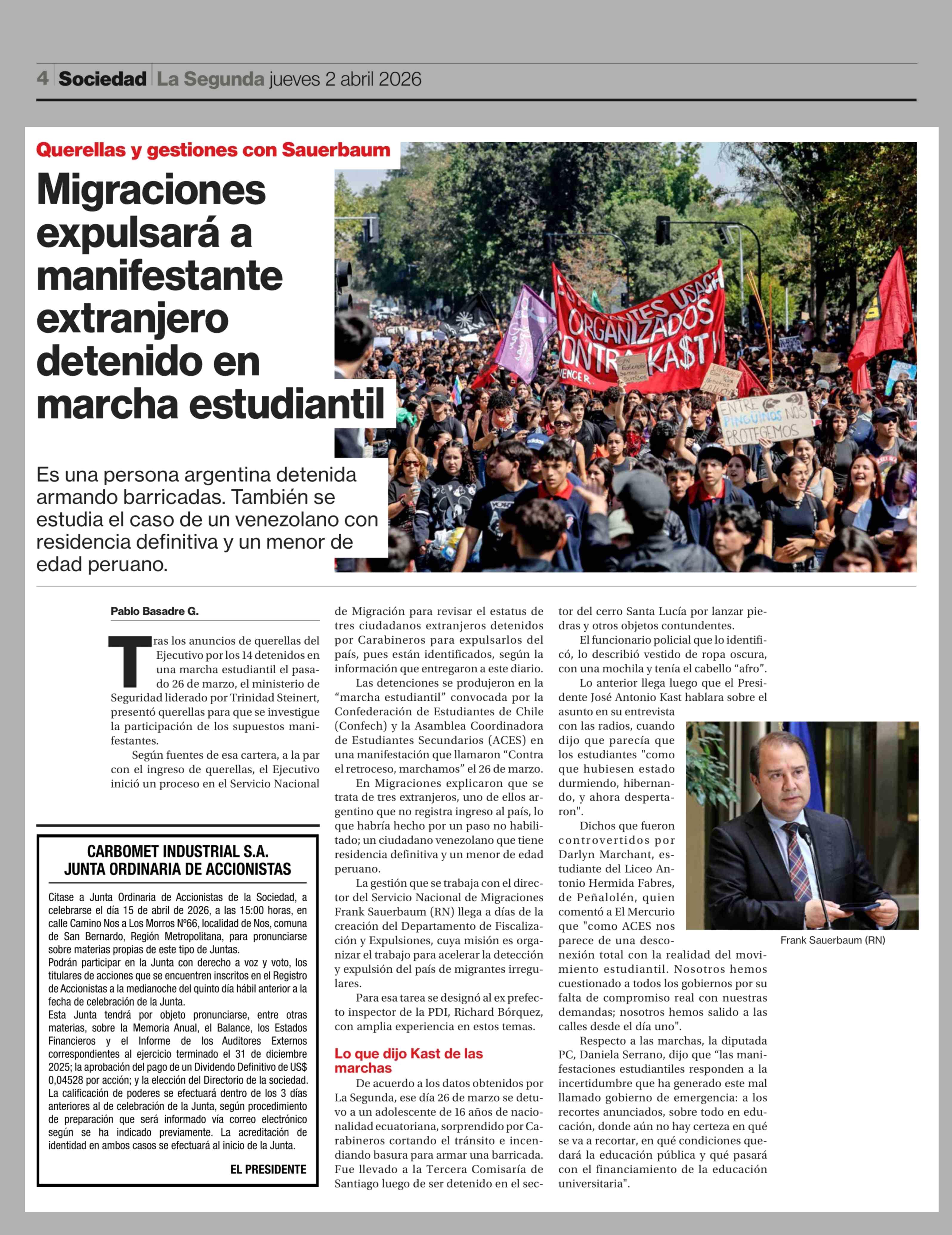 Fecha: 02-04-2026 Sector: Noticia general Región: Región Metropolitana de Santiago