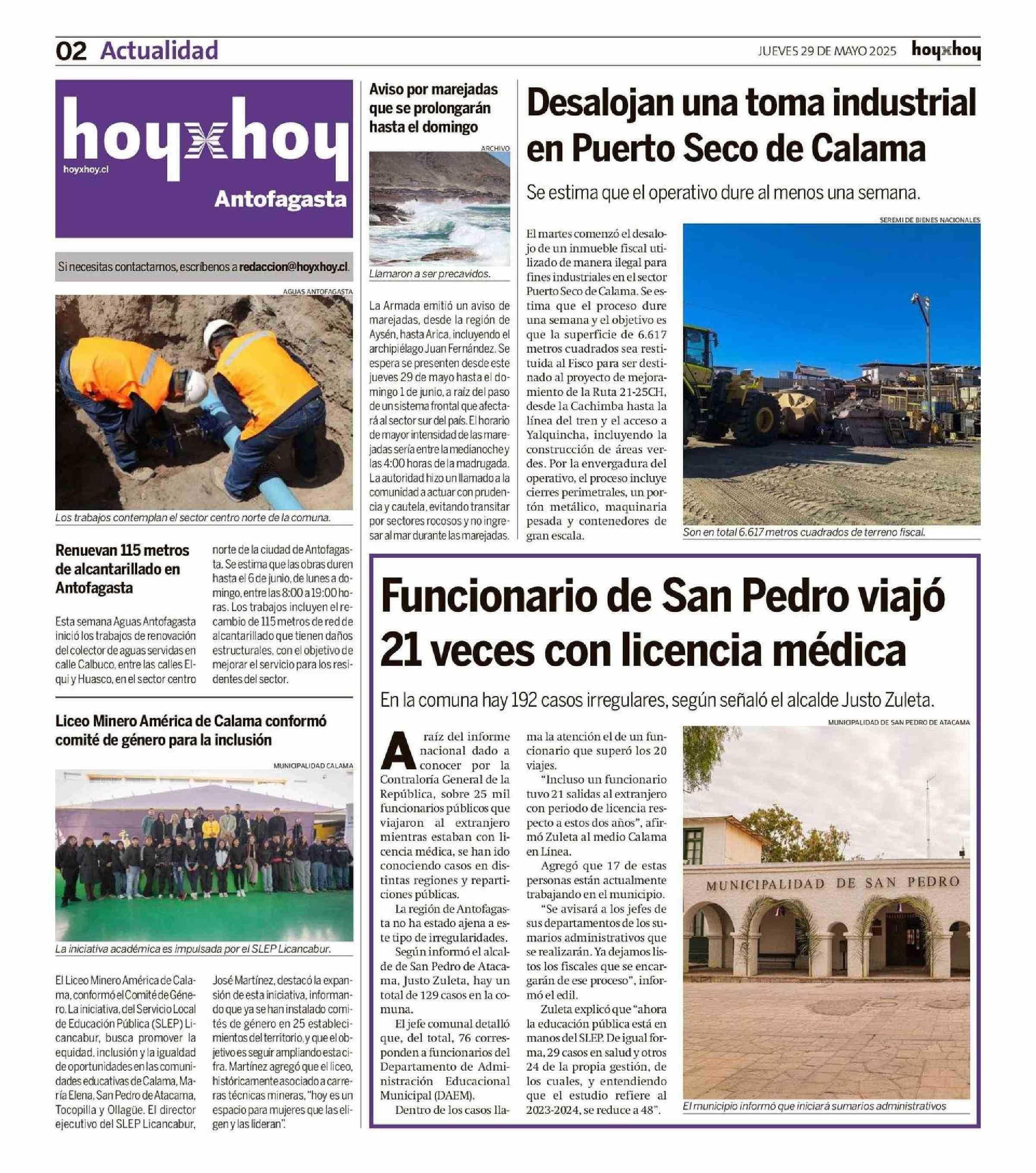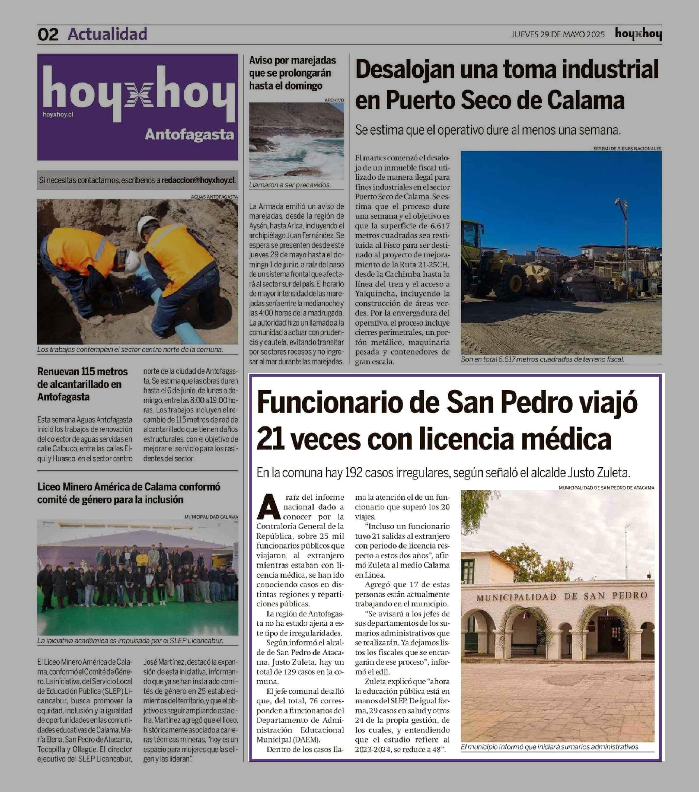 Funcionario de San Pedro viajó 21 veces con licencia médica 29-05-2025 Hoy x Hoy Antofagasta |