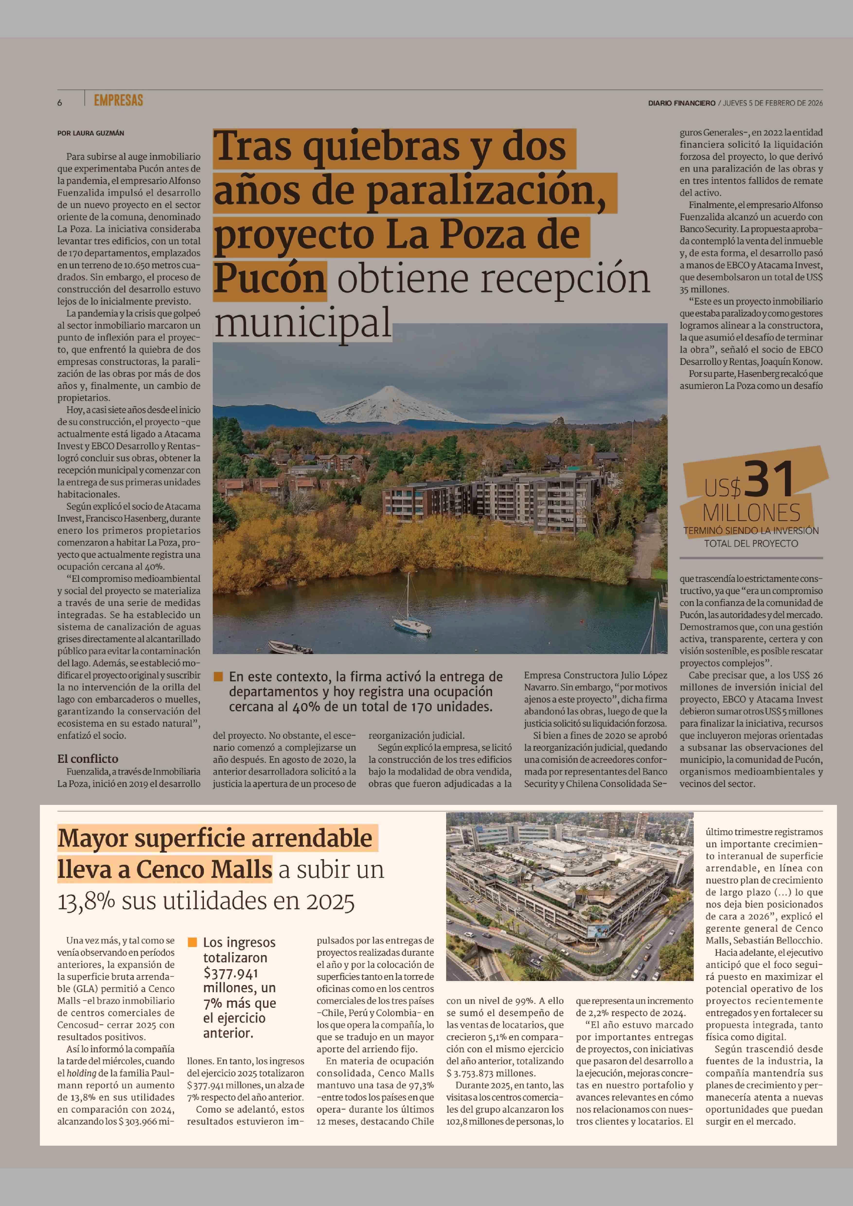 Fuente: Diario Financiero (Diario Financiero) Página(s): 6