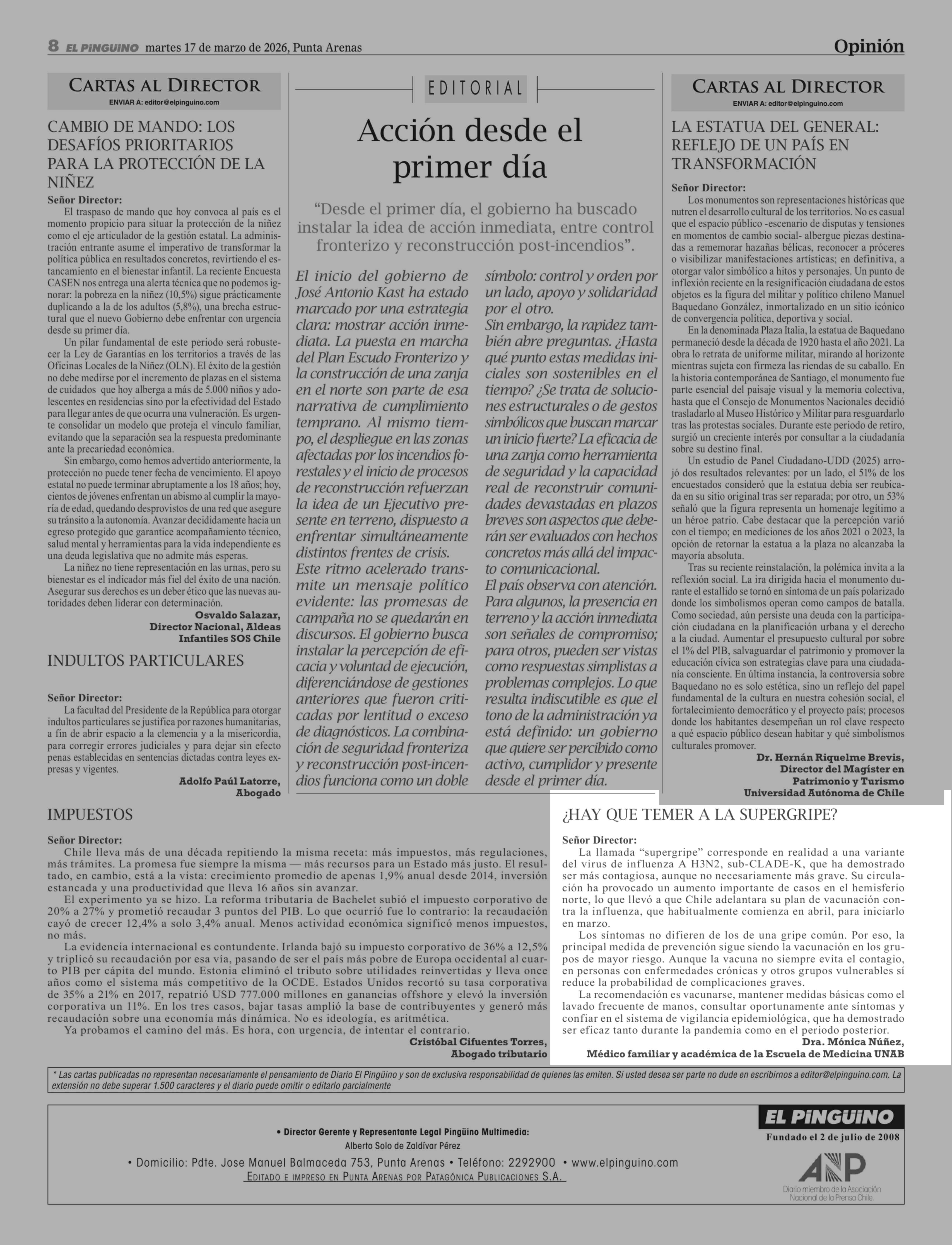CARTAS: ¿HAY QUE TEMER A LA SUPERGRIPE? 17-03-2026 El Pingüino |