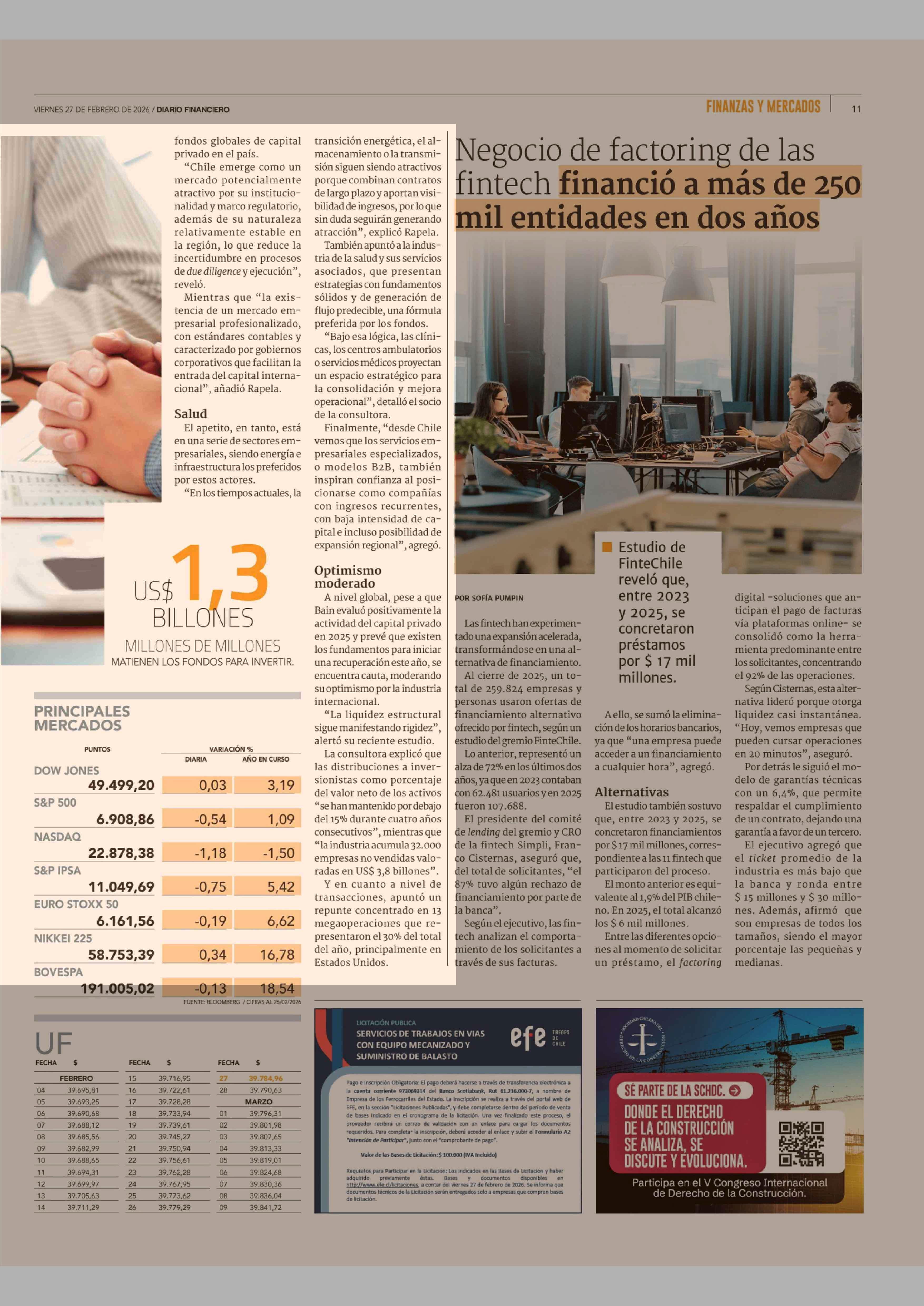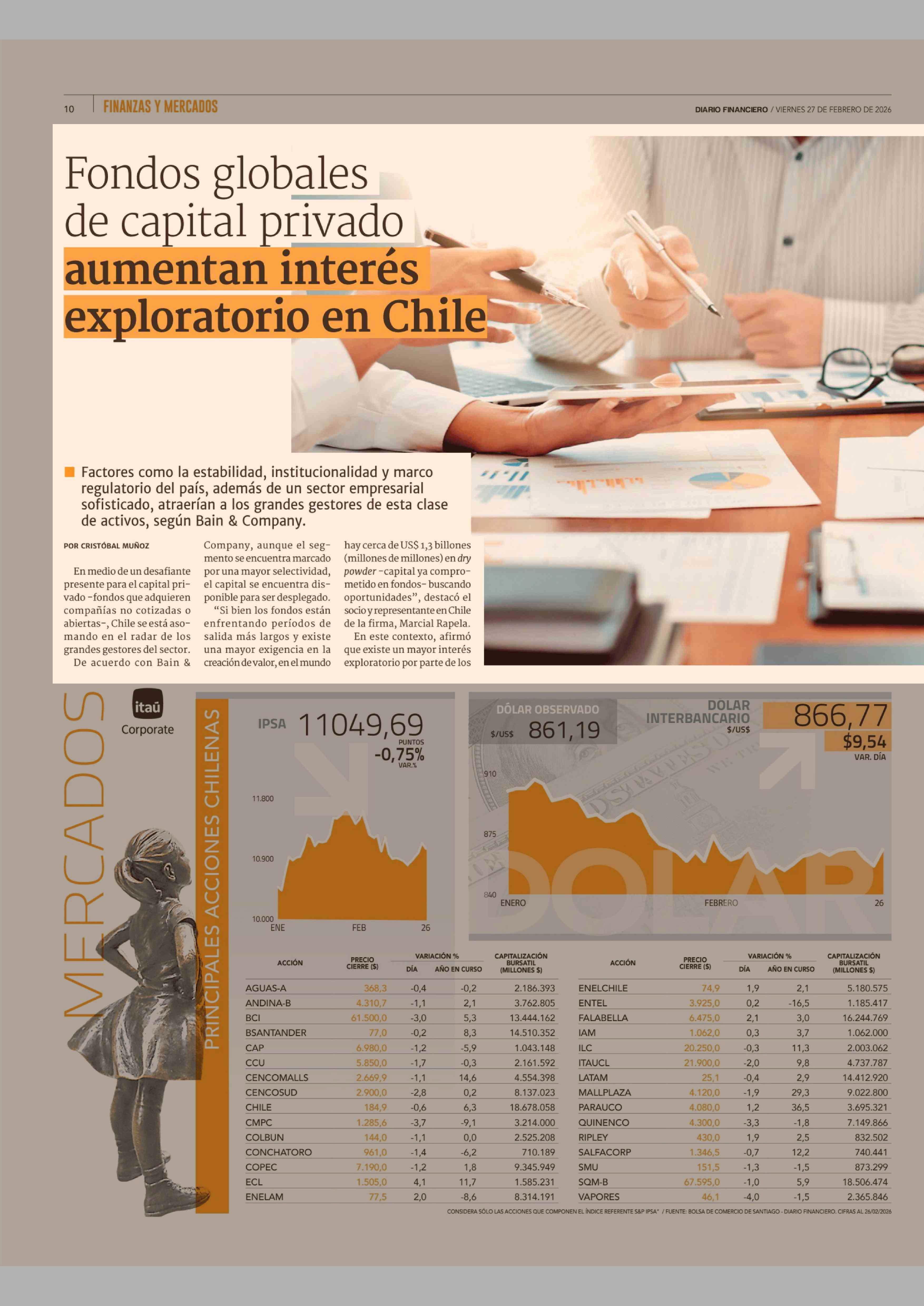 Fondos globales de capital privado aumentan interés exploratorio en Chile 27-02-2026 Diario Financiero |