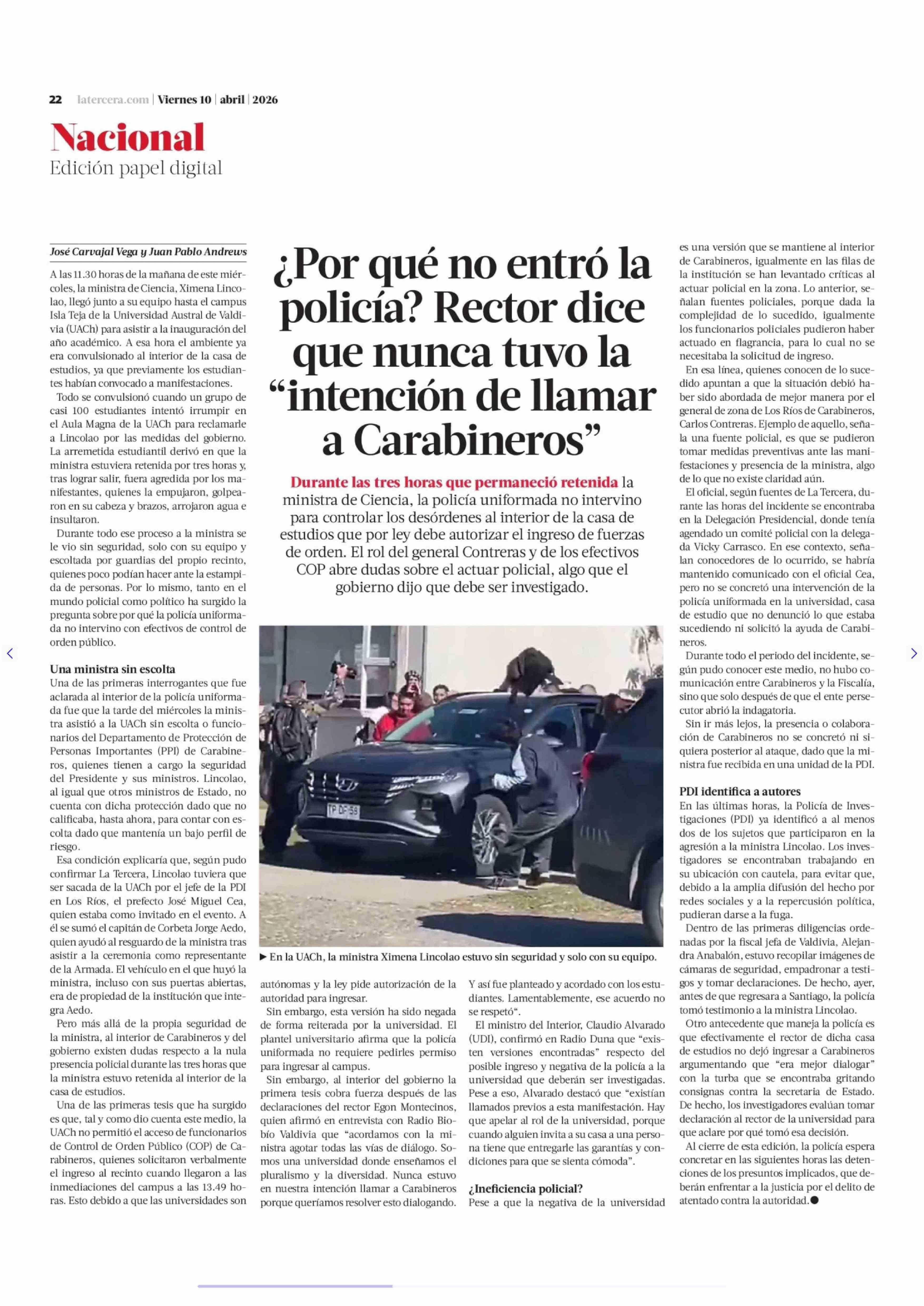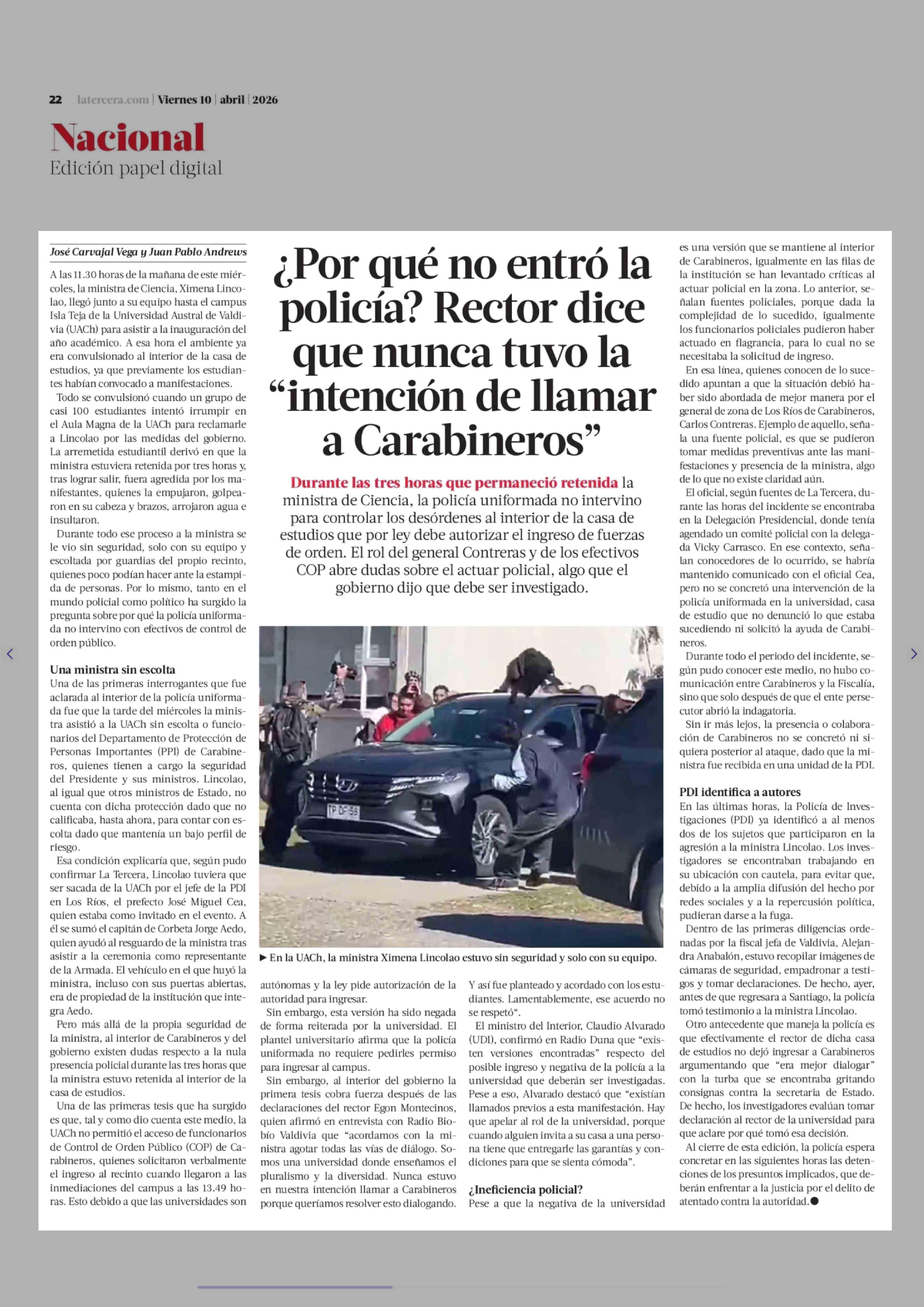 Fecha: 10-04-2026 Sector: Noticia general Región: Región Metropolitana de Santiago