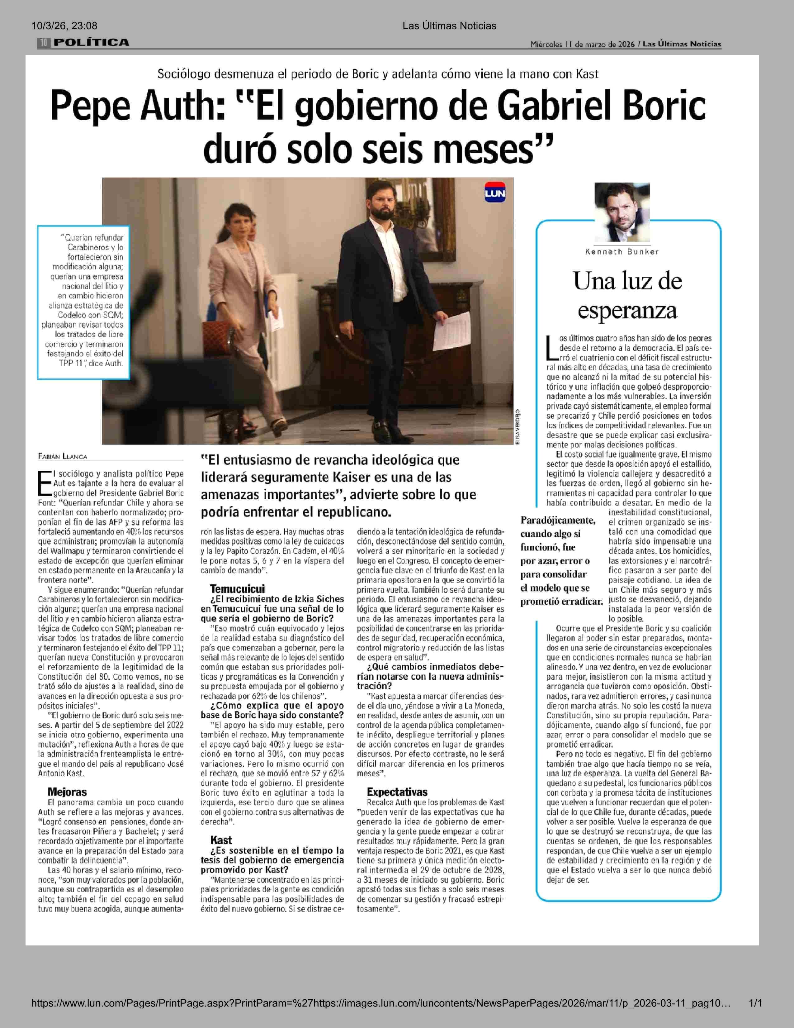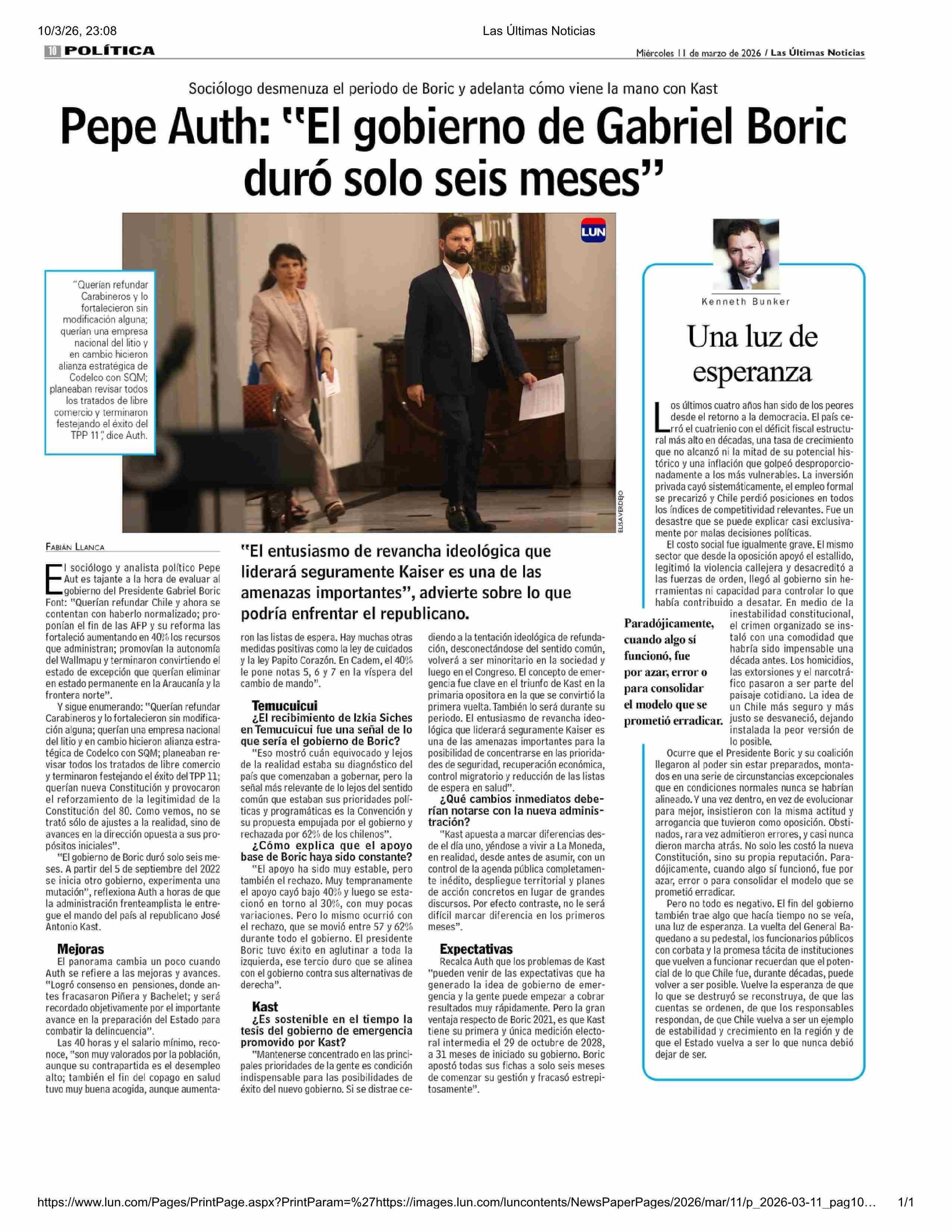 Pepe Auth: “El gobierno de Gabriel Boric duró solo seis meses” 11-03-2026 Las Últimas Noticias |