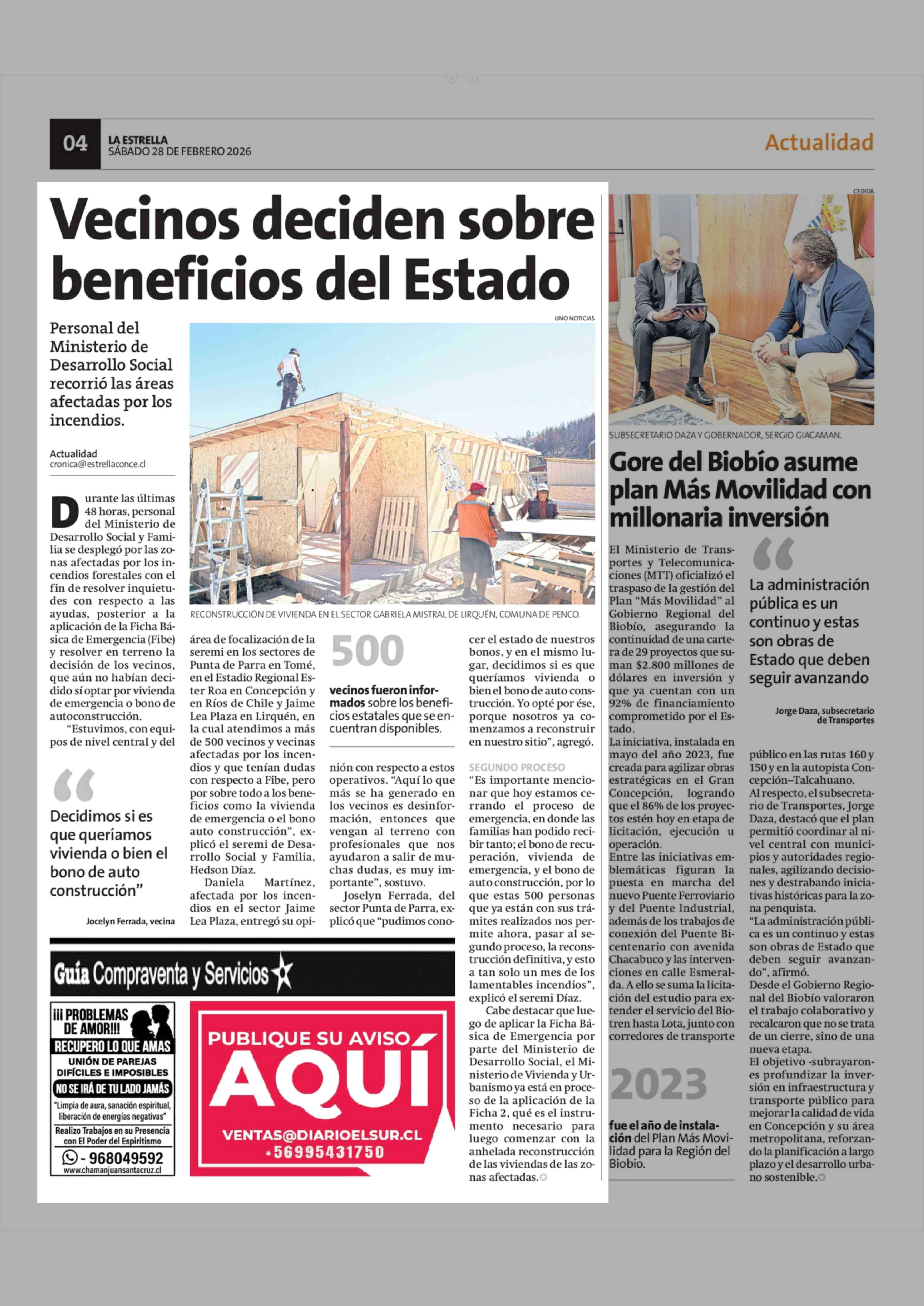 Vecinos deciden sobre beneficios del Estado 28-02-2026 La Estrella de Concepción |