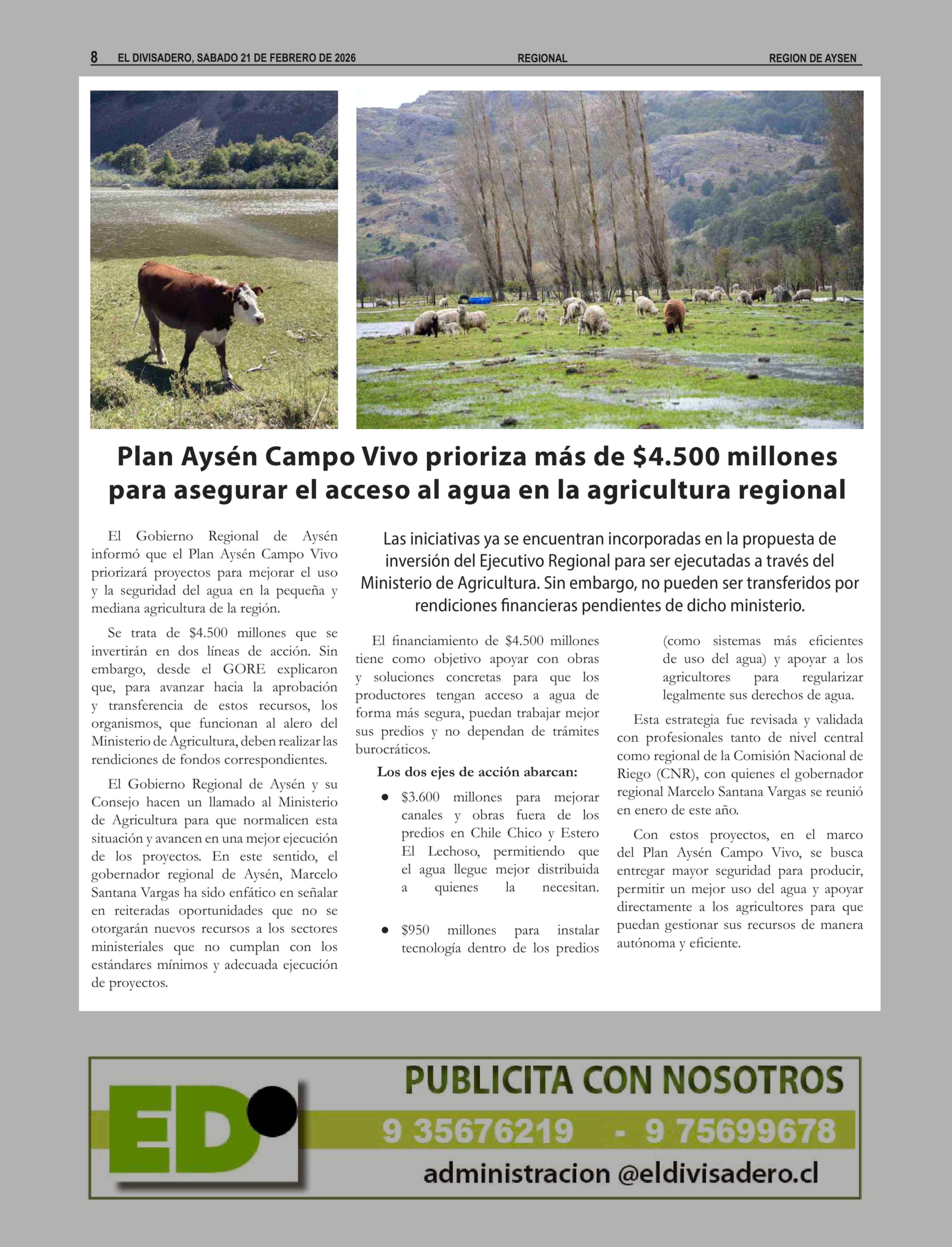 Título: Plan Aysén Campo Vivo prioriza más de $4.500 millones para asegurar el acceso al agua en la agricultura regional