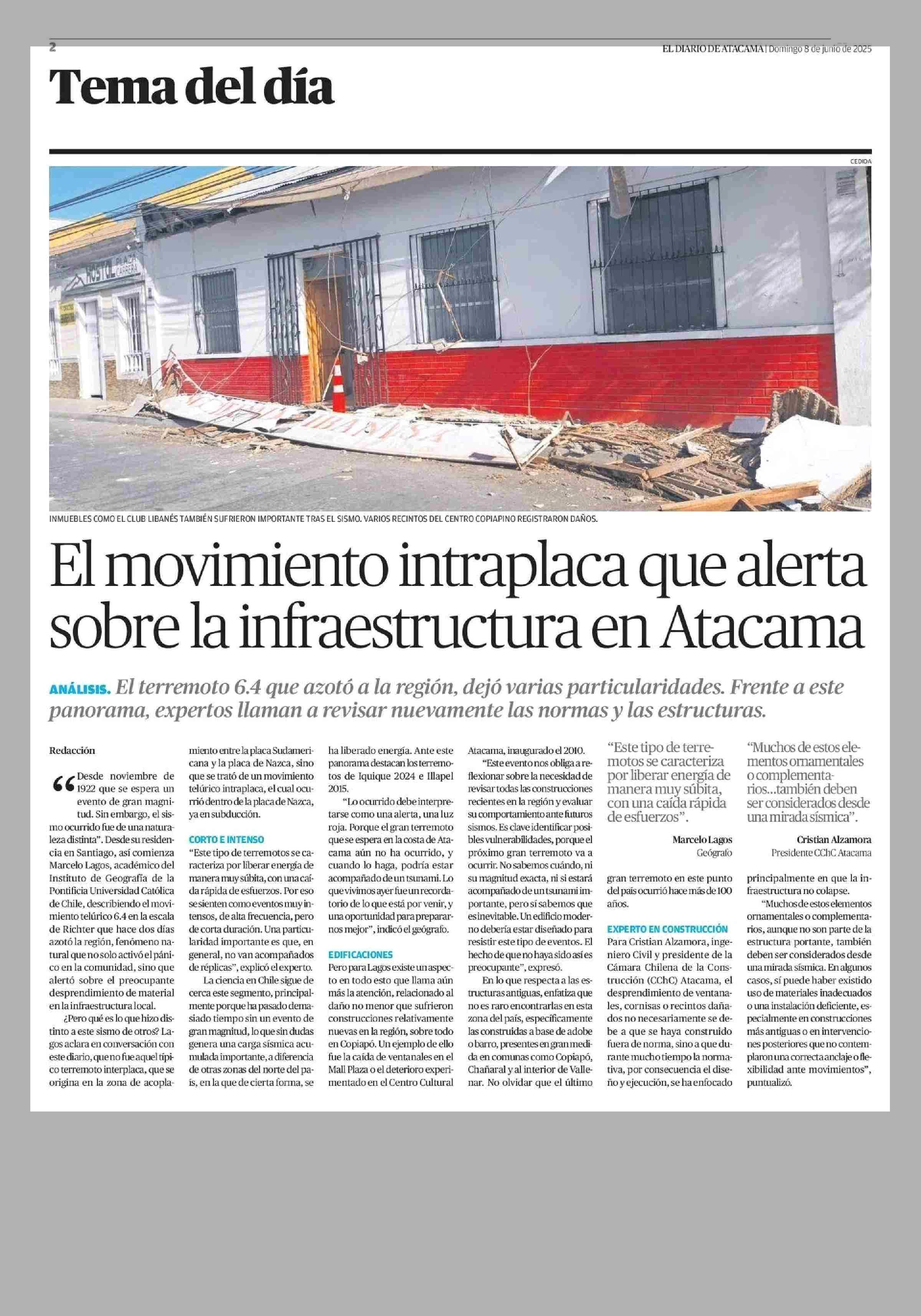 El movimiento intraplaca que alerta sobre la infraestructura en Atacama 08-06-2025 El Diario de Atacama |