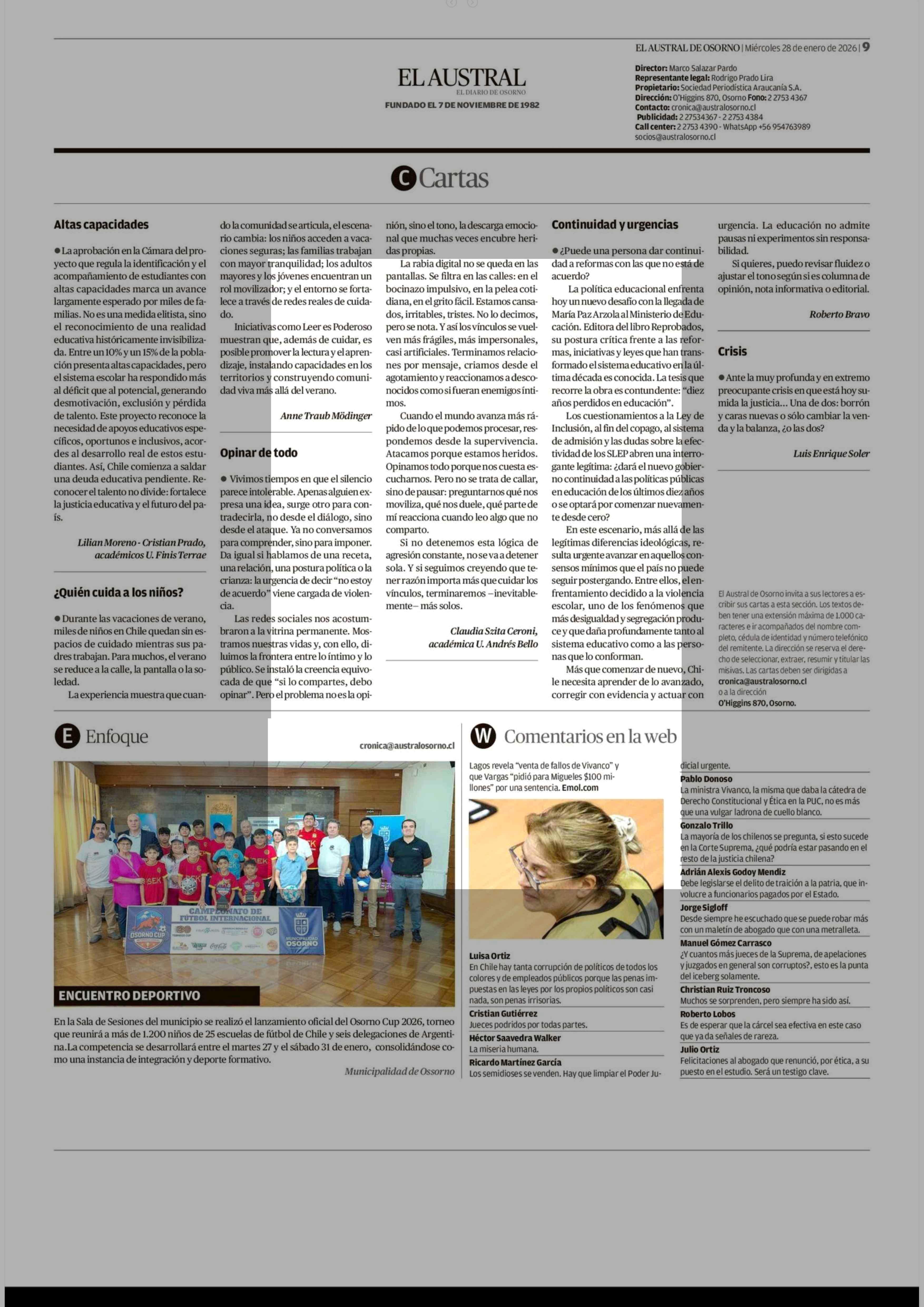 Opinar de todo 28-01-2026 El Austral de Osorno |