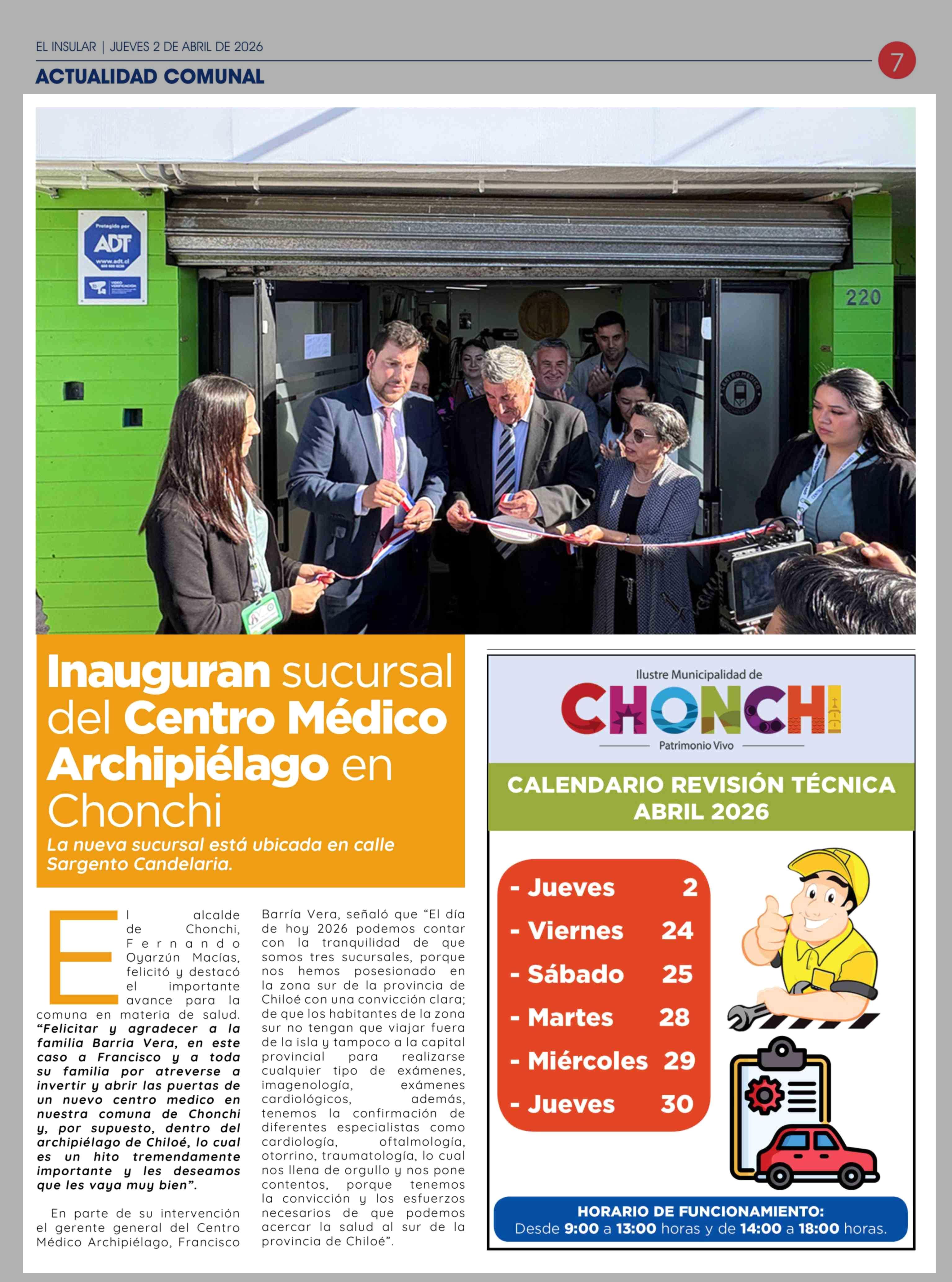 Inauguran sucursal del Centro Médico Archipiélago en Chonchi 02-04-2026 El Insular |