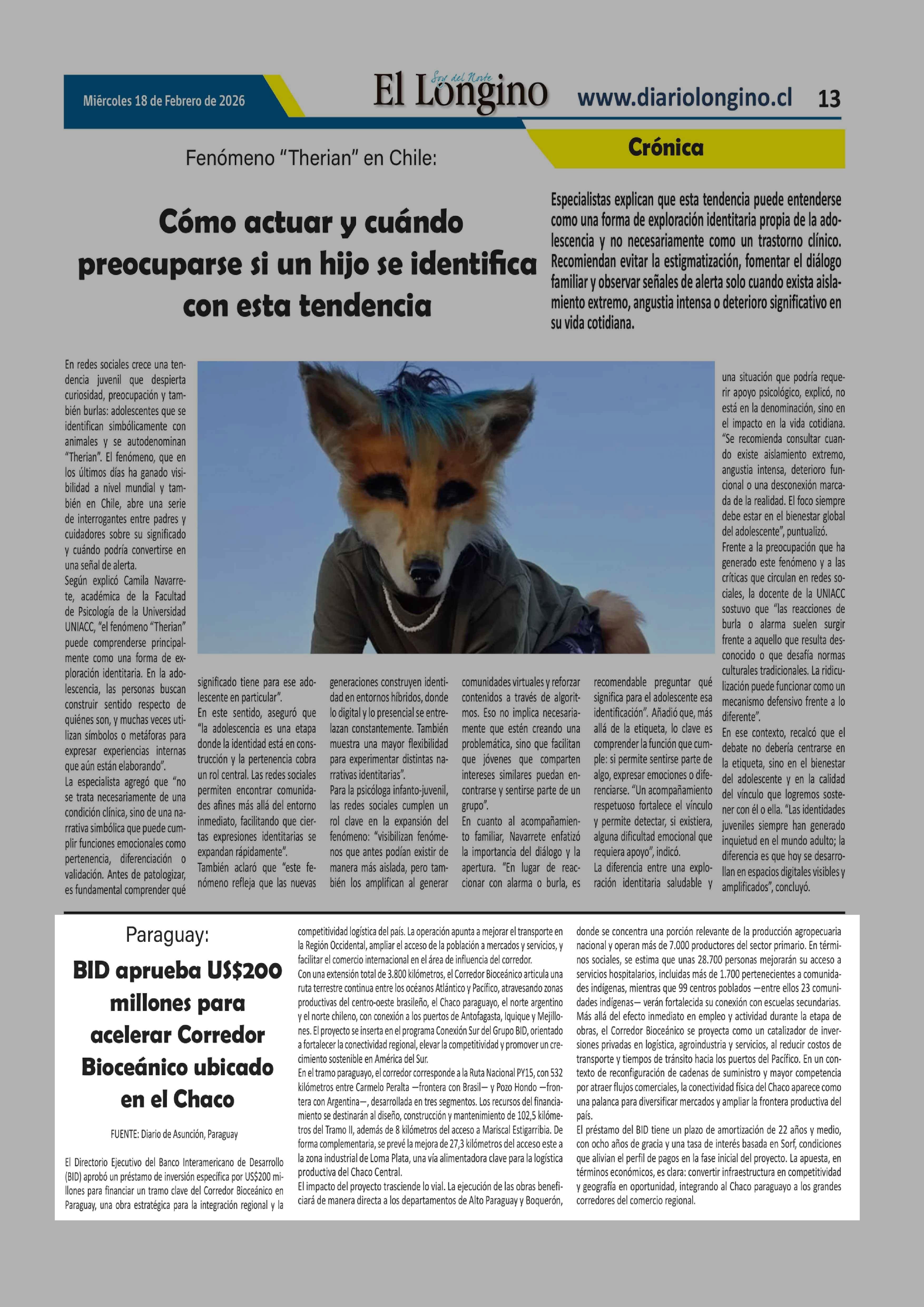 BID aprueba US$200 millones para acelerar Corredor Bioceánico ubicado en el Chaco 18-02-2026 El Longino |