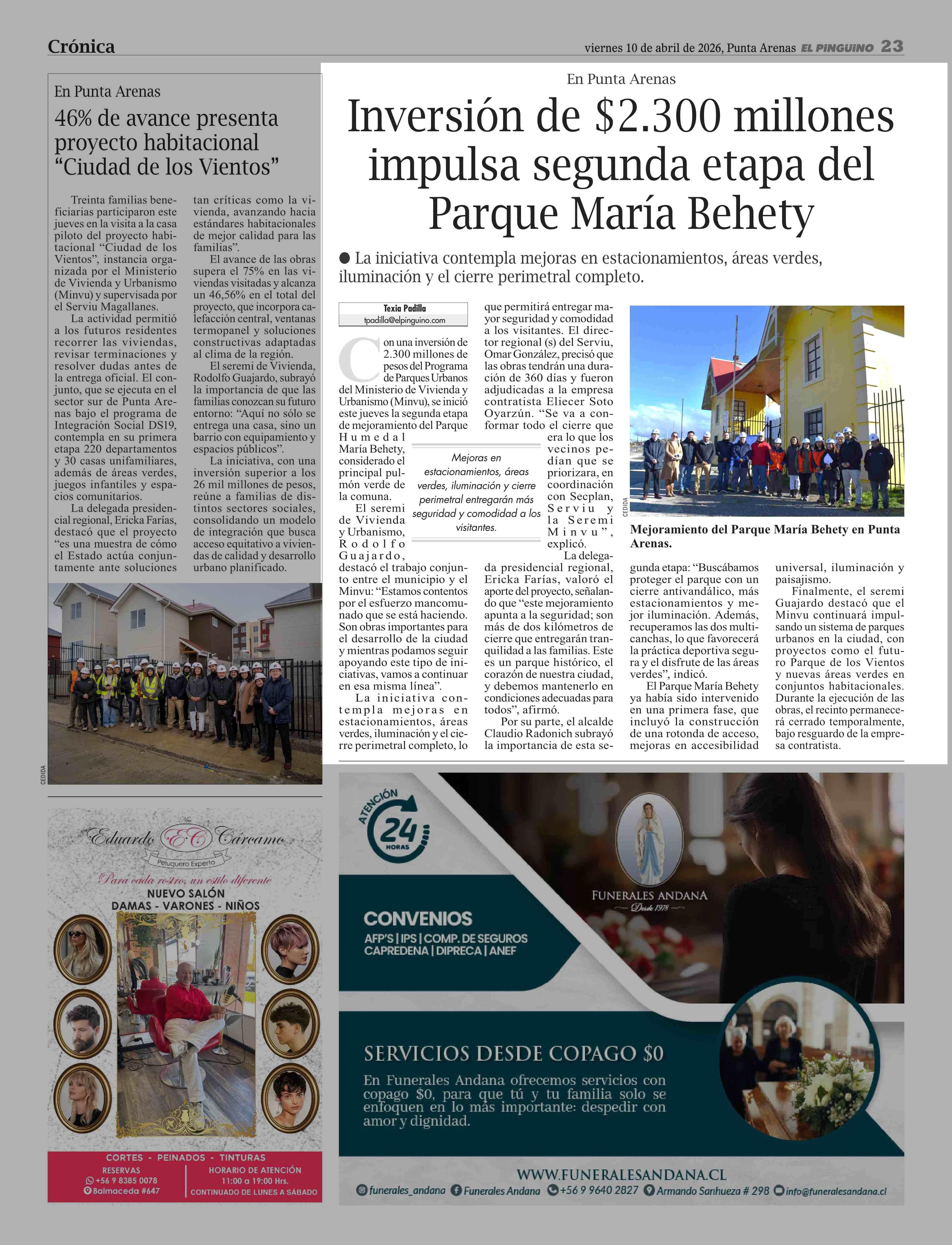 Fecha: 10-04-2026 Sector: Noticia general Región: Región de Magallanes y de la Antártica Chilena