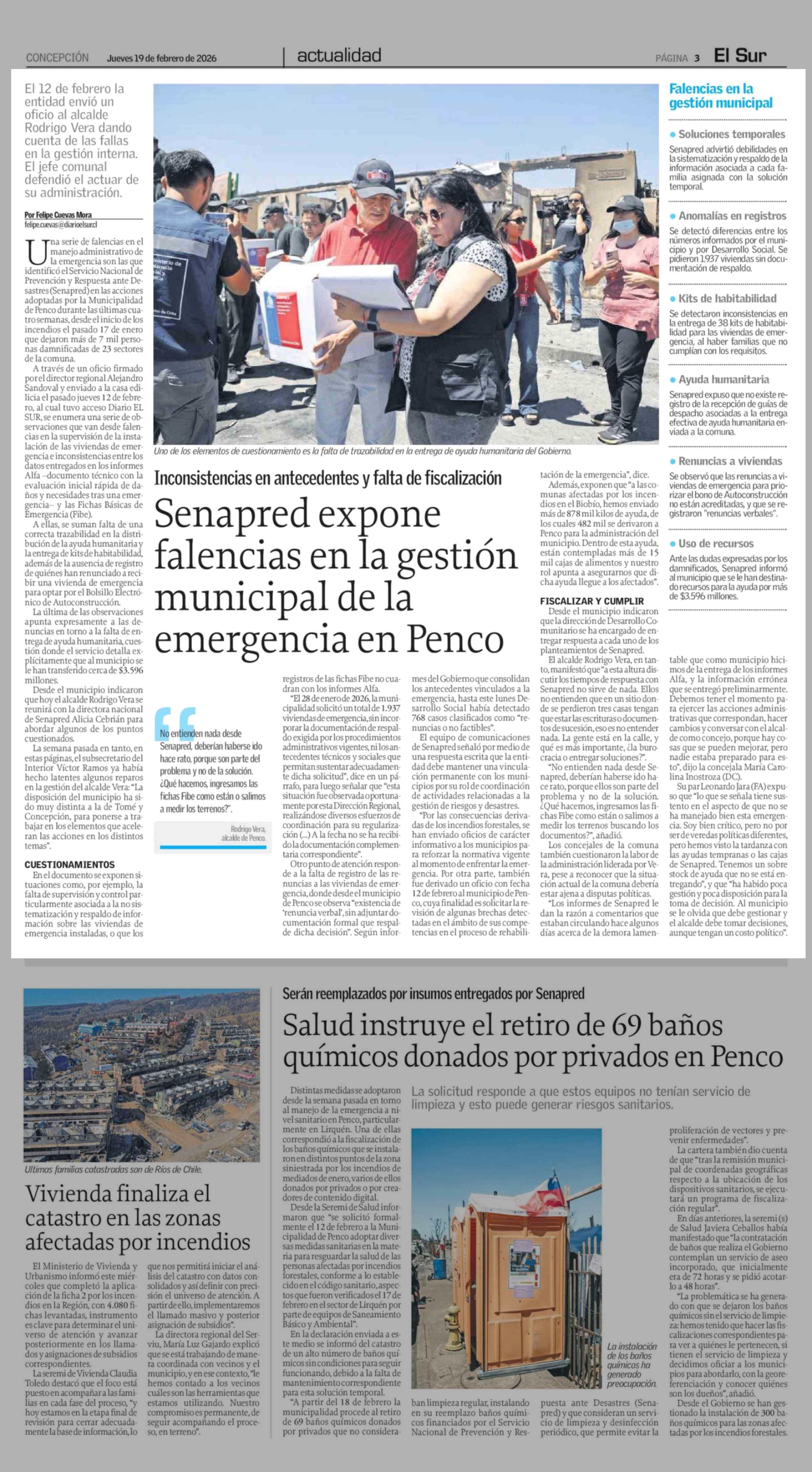 Título: Senapred expone falencias en la gestión municipal de la emergencia en Penco