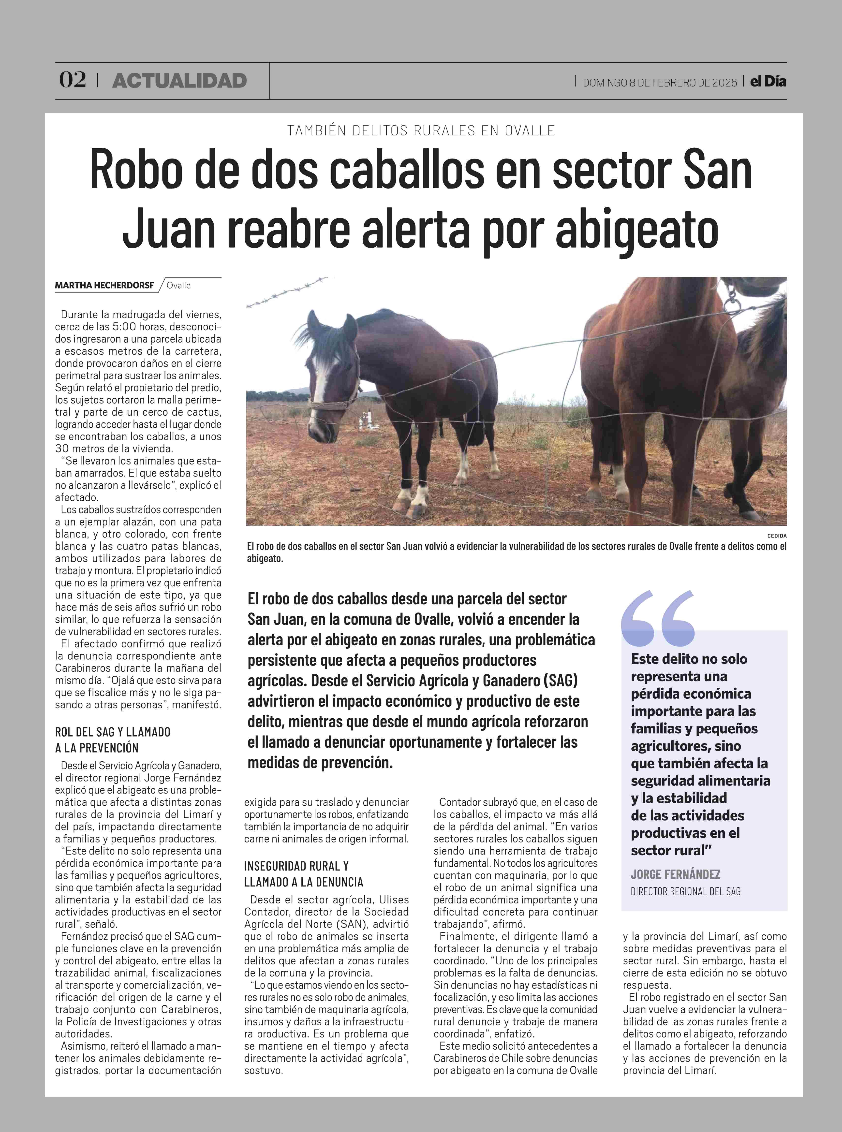 Robo de dos caballos en sector San Juan reabre alerta por abigeato 08-02-2026 El Día |