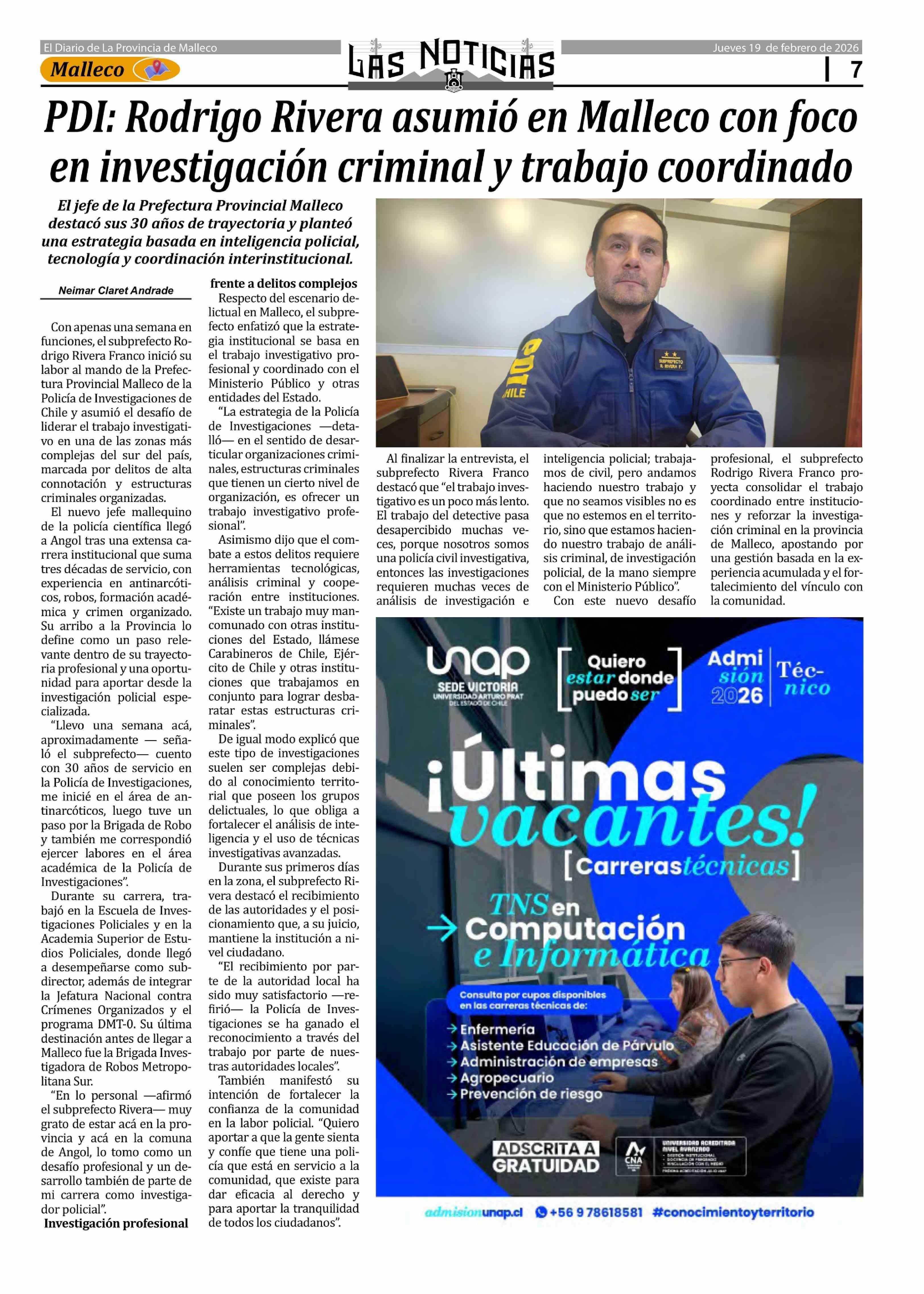 Fecha: 19-02-2026 Sector: Noticia general Región: Región de la Araucanía