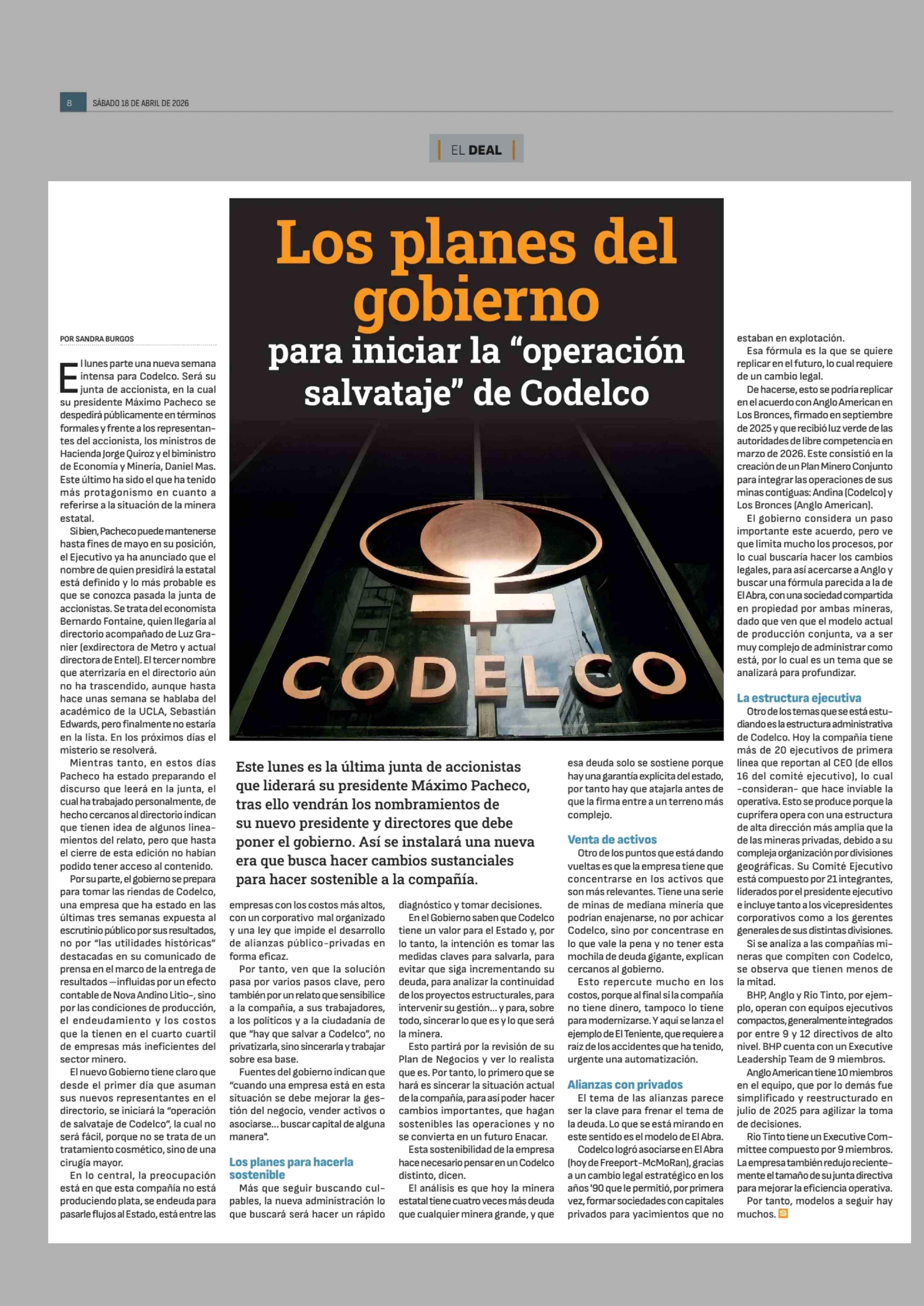 Título: Los planes del gobierno para iniciar la "operación salvataje" de Codelco