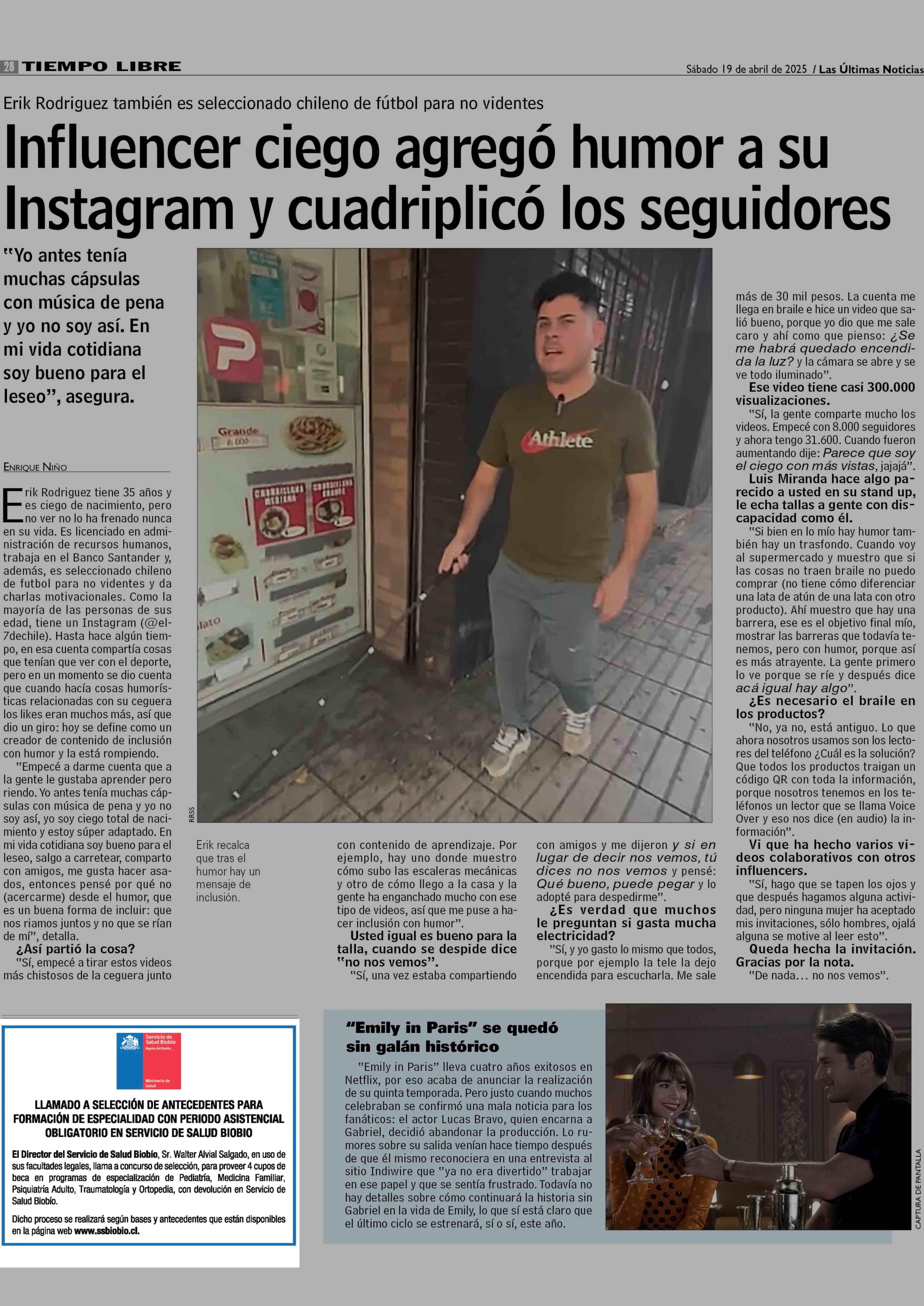 EXTRACTOS: LLAMADO A SELECCIÓN DE ANTECEDENTES PARA FORMACIÓN DE ESPECIALIDAD CON PERIODO ASISTENCIAL OBLIGATORIO EN SERVICIO DE SALUD BIOBIO 19-04-2025 Las Últimas Noticias |