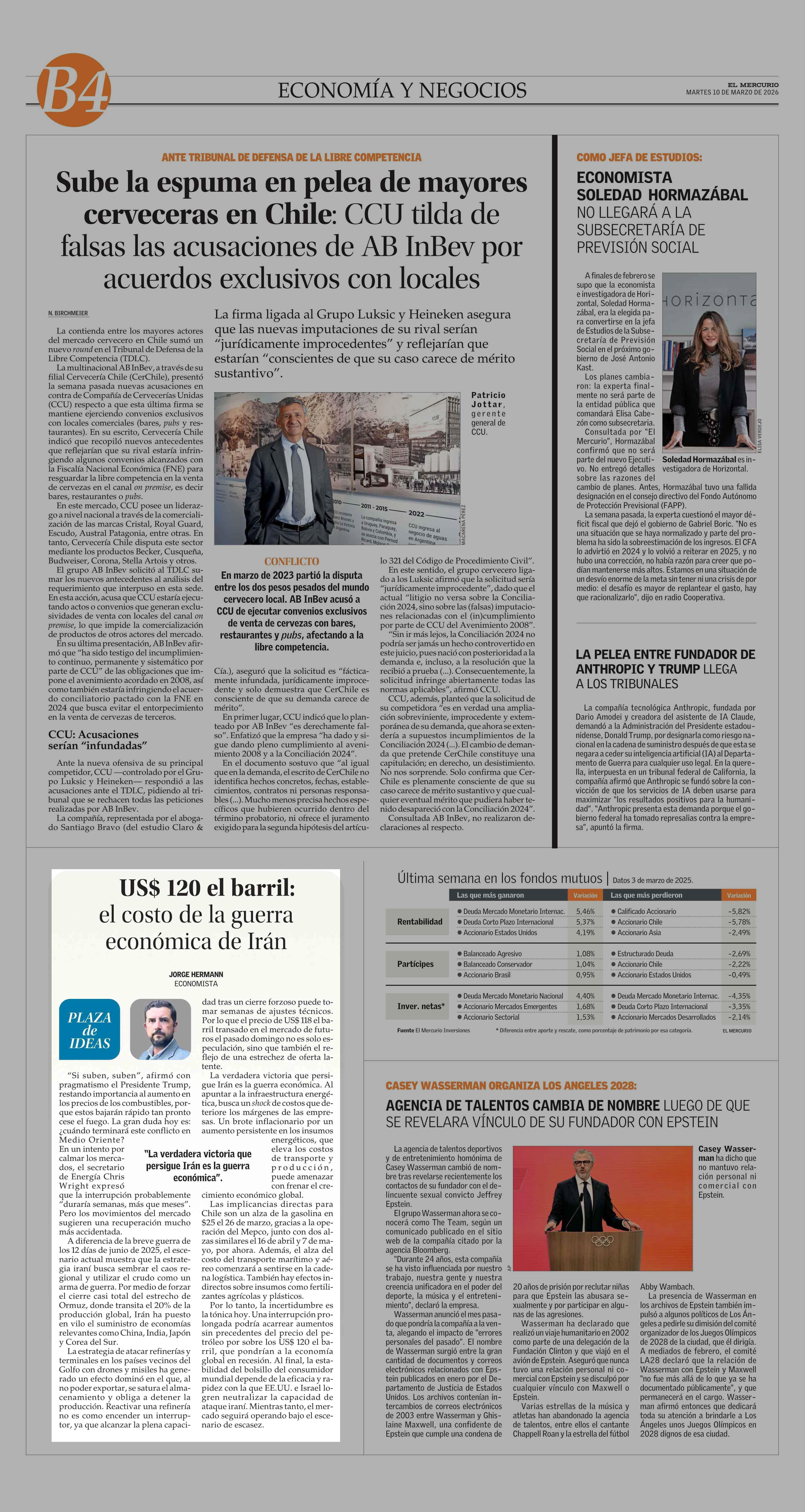 Columnas de Opinión: US$ 120 el barril: el costo de la guerra económica de Irán 10-03-2026 El Mercurio |