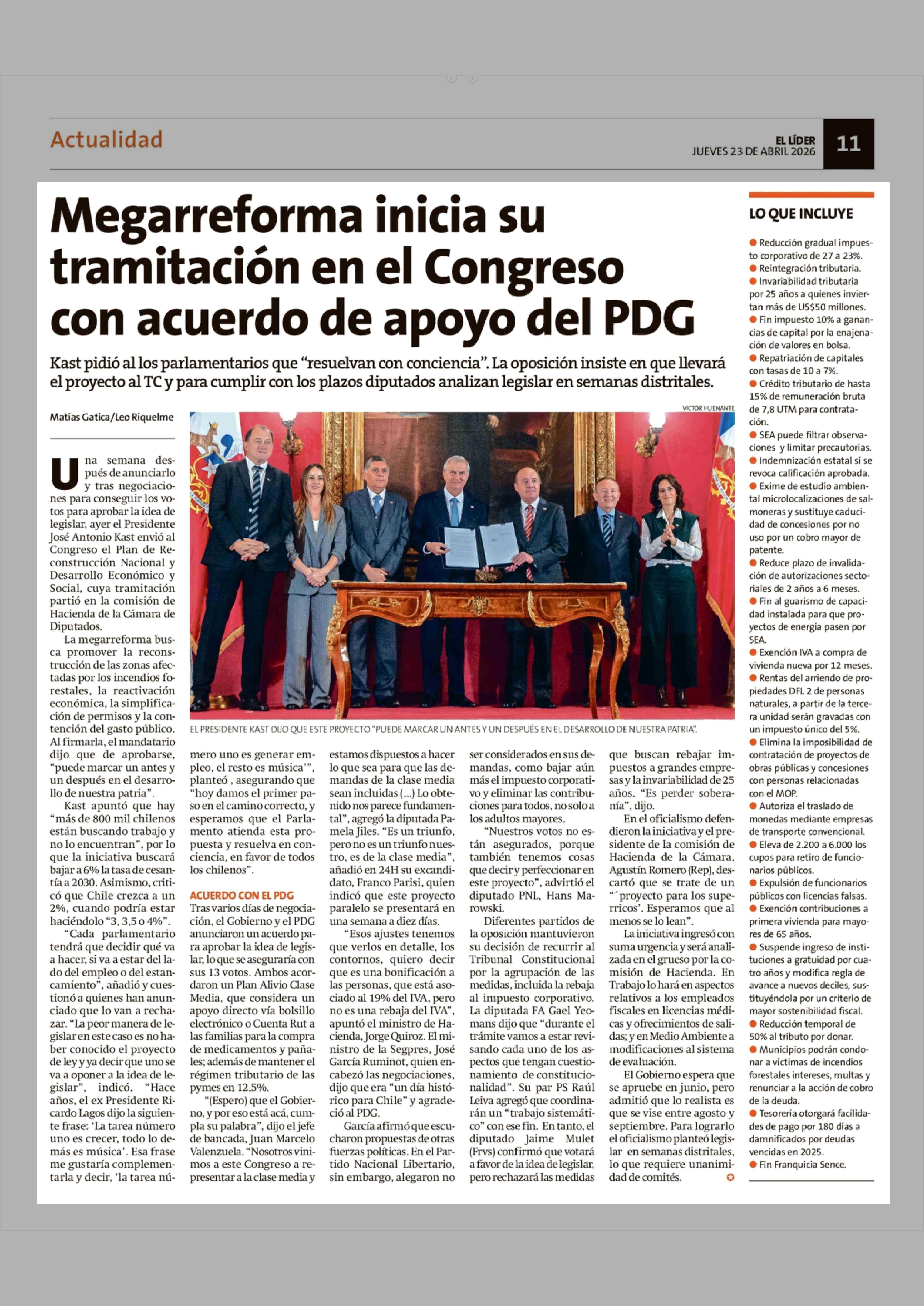 Título: Megarreforma inicia su tramitación en el Congreso con acuerdo de apoyo del PDG