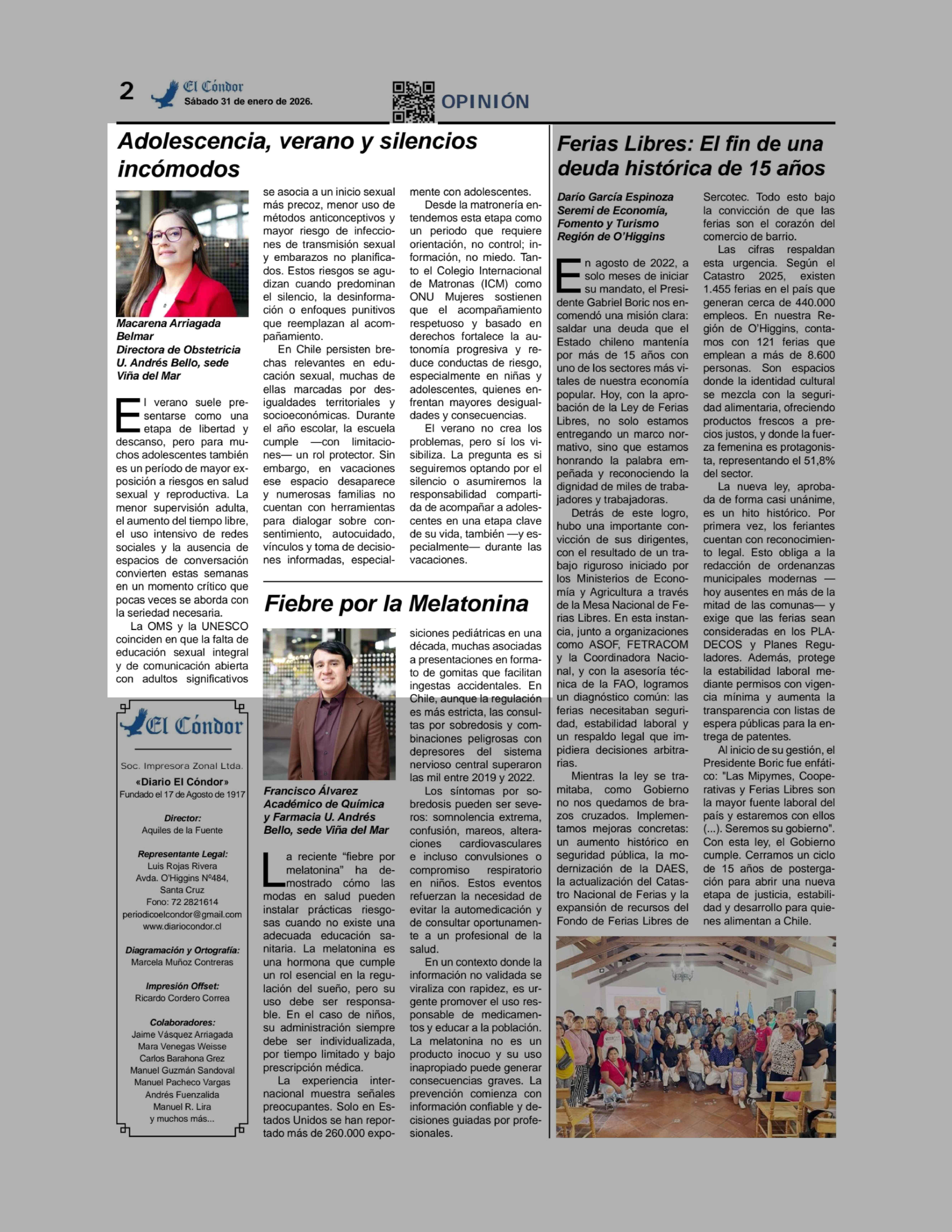 Columnas de Opinión: Adolescencia, verano y silencios incómodos 31-01-2026 Diario El Cóndor |