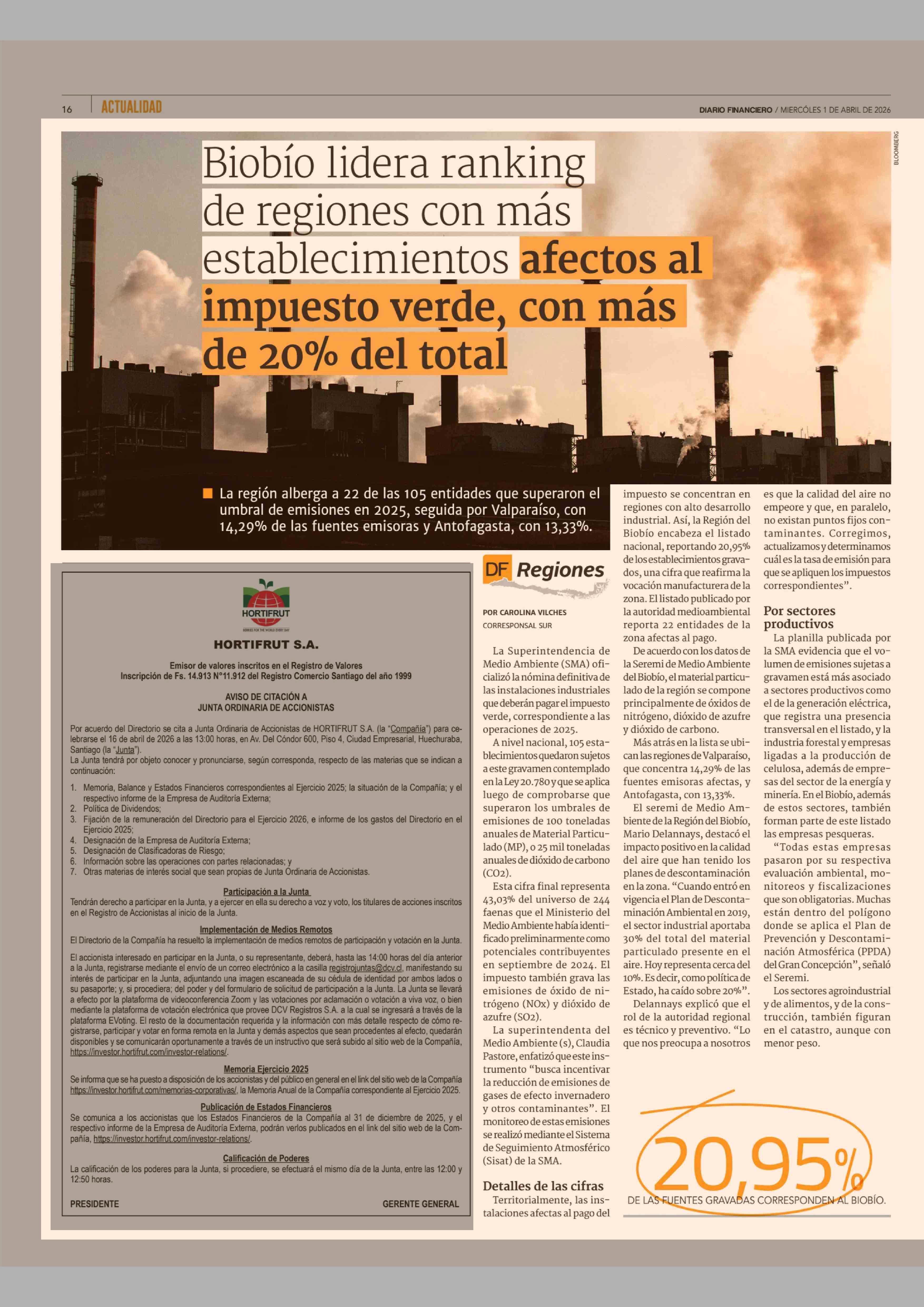 Fuente: Diario Financiero (Diario Financiero) Página(s): 16
