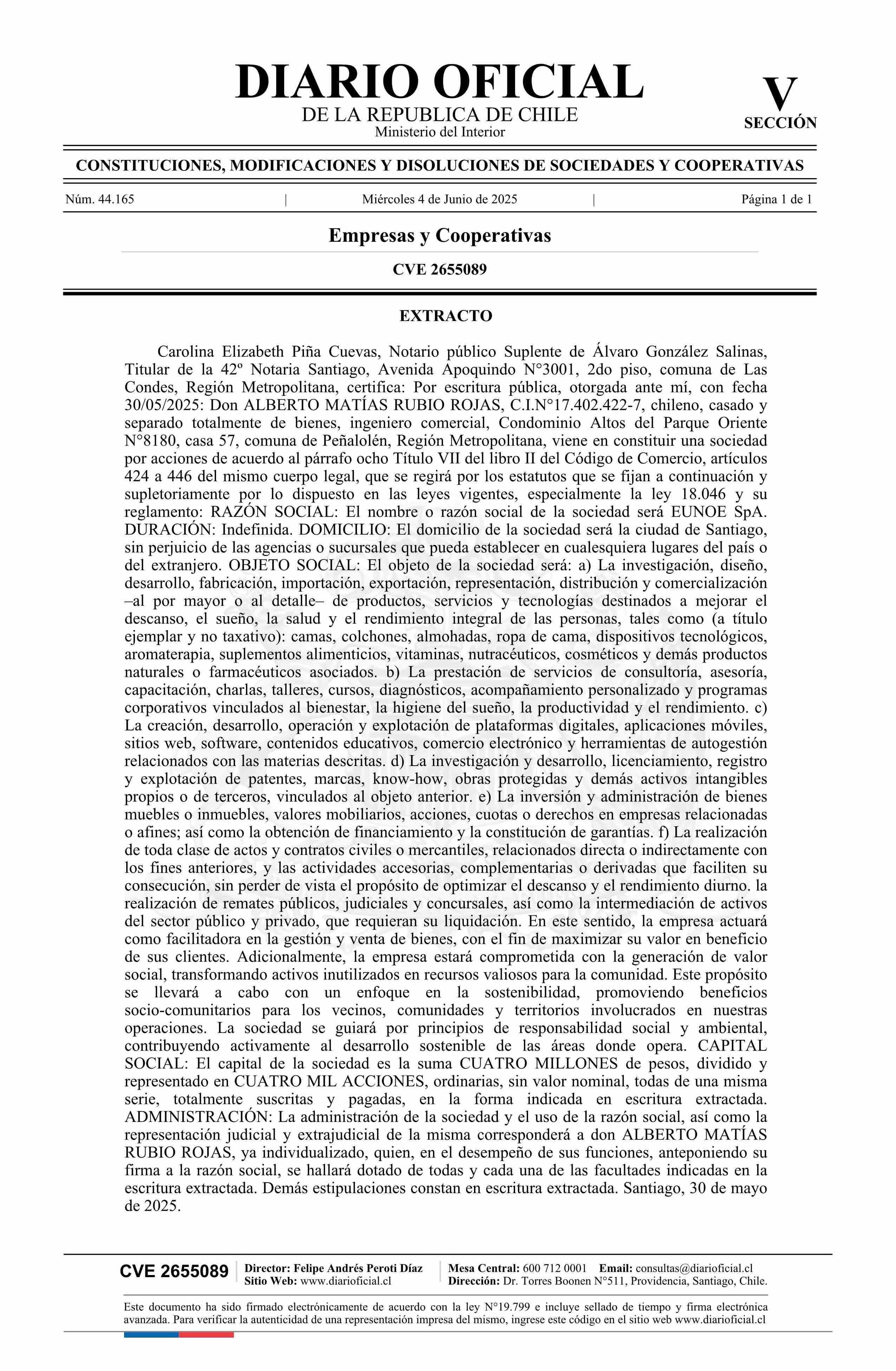 EUNOE SpA 04-06-2025 Diario Oficial Edición Electrónica |