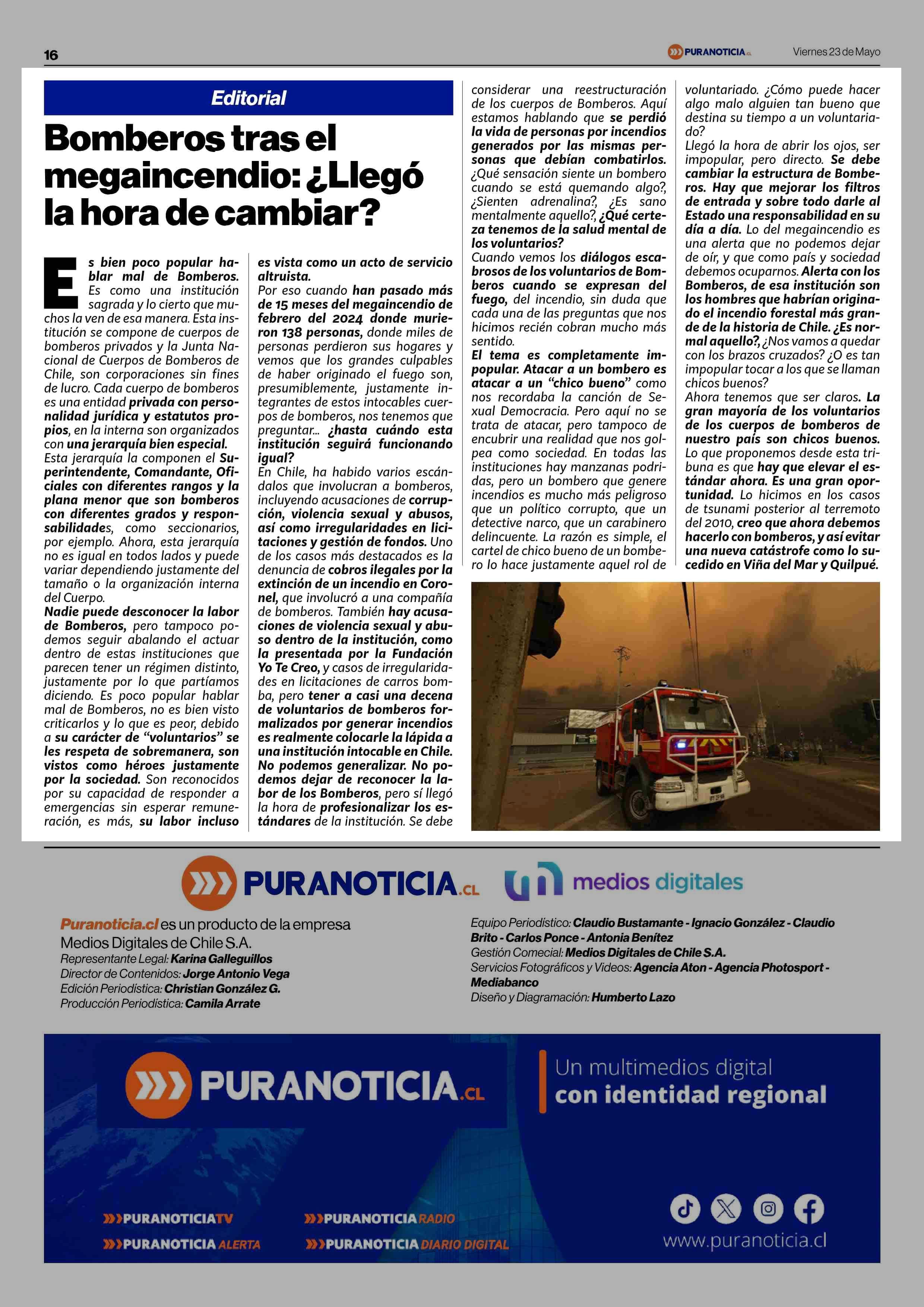 Bomberos tras el megaincendio: ¿Llegó la hora de cambiar? 23-05-2025 Puranoticia.cl |