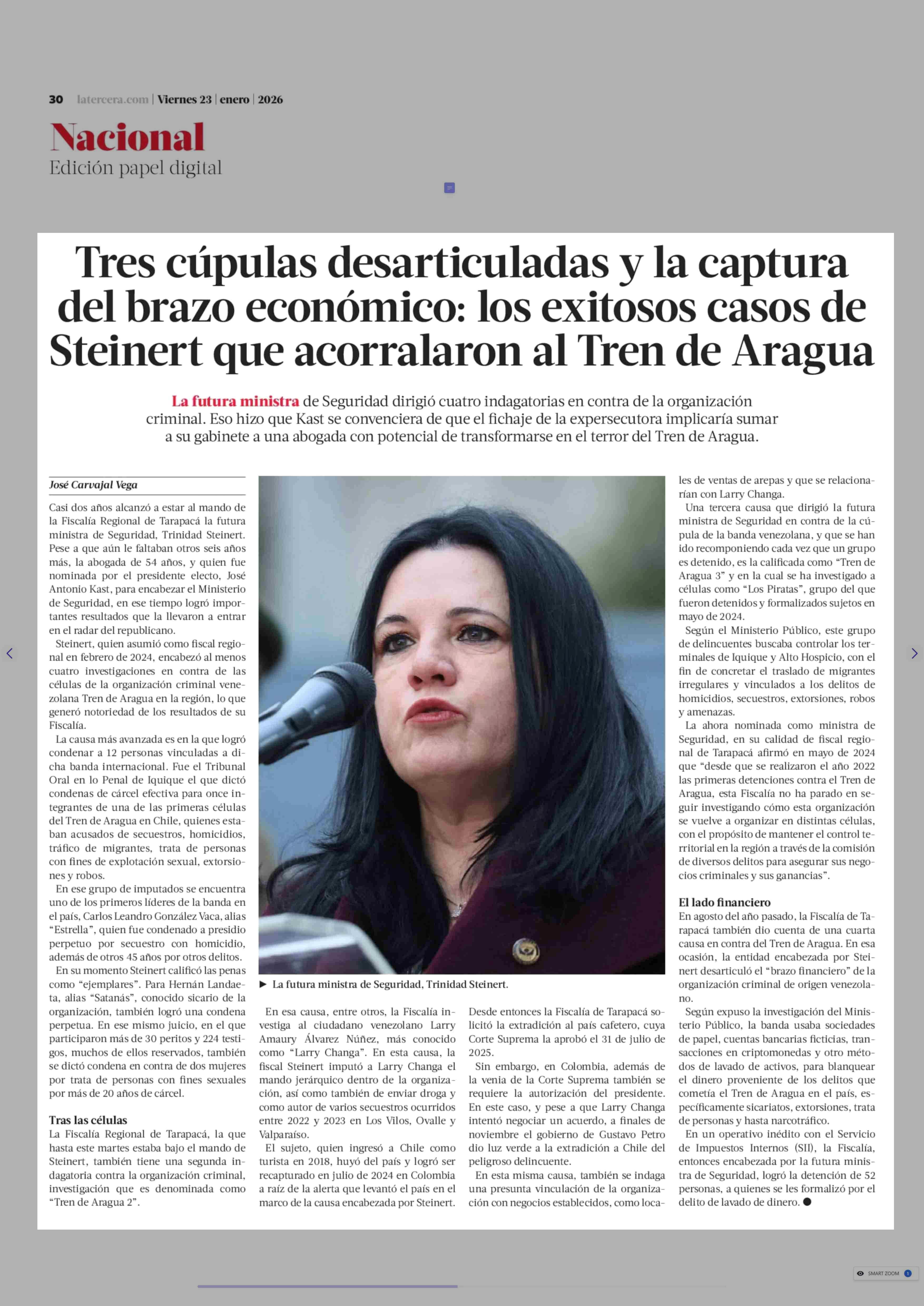 Título: Tres cúpulas desarticuladas y la captura del brazo económico: los exitosos casos de Steinert que acorralaron al Tren de Aragua