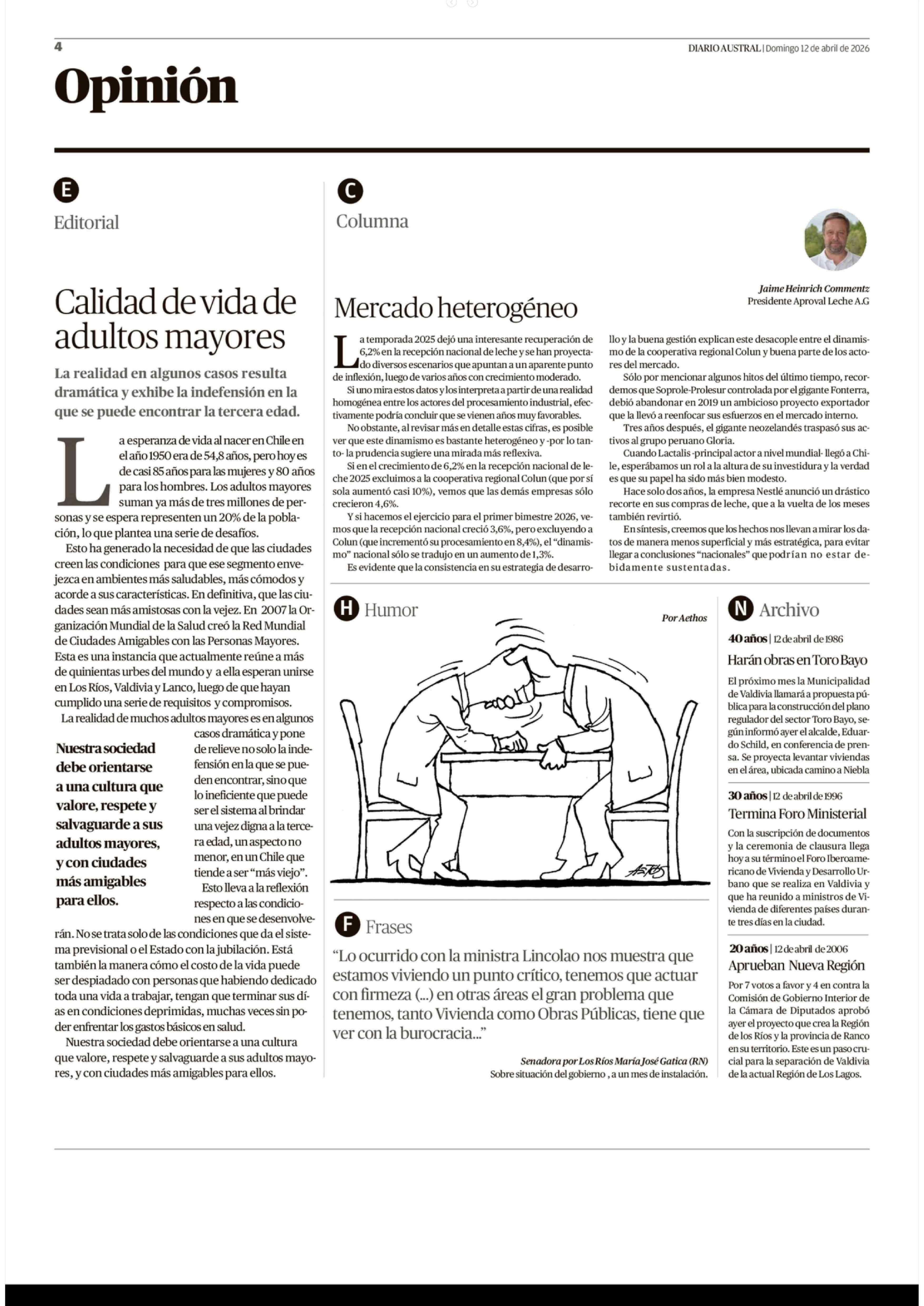 Editorial: Calidad de vida de adultos mayores 12-04-2026 Diario Austral Región de Los Ríos |