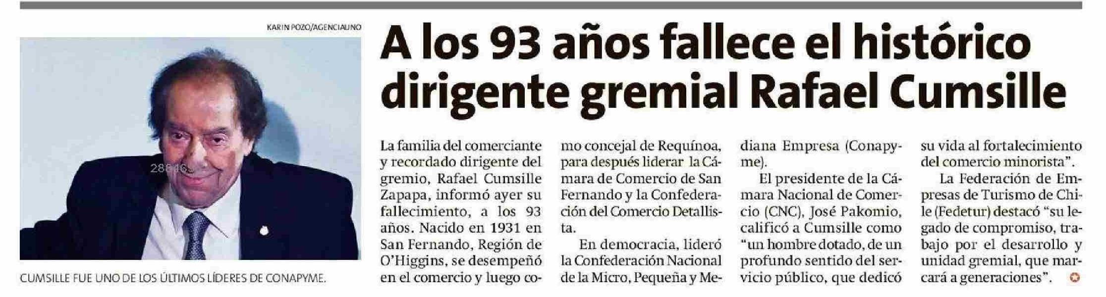 | Título: | A los 93 años fallece el histórico dirigente gremial Rafael Cumsille |