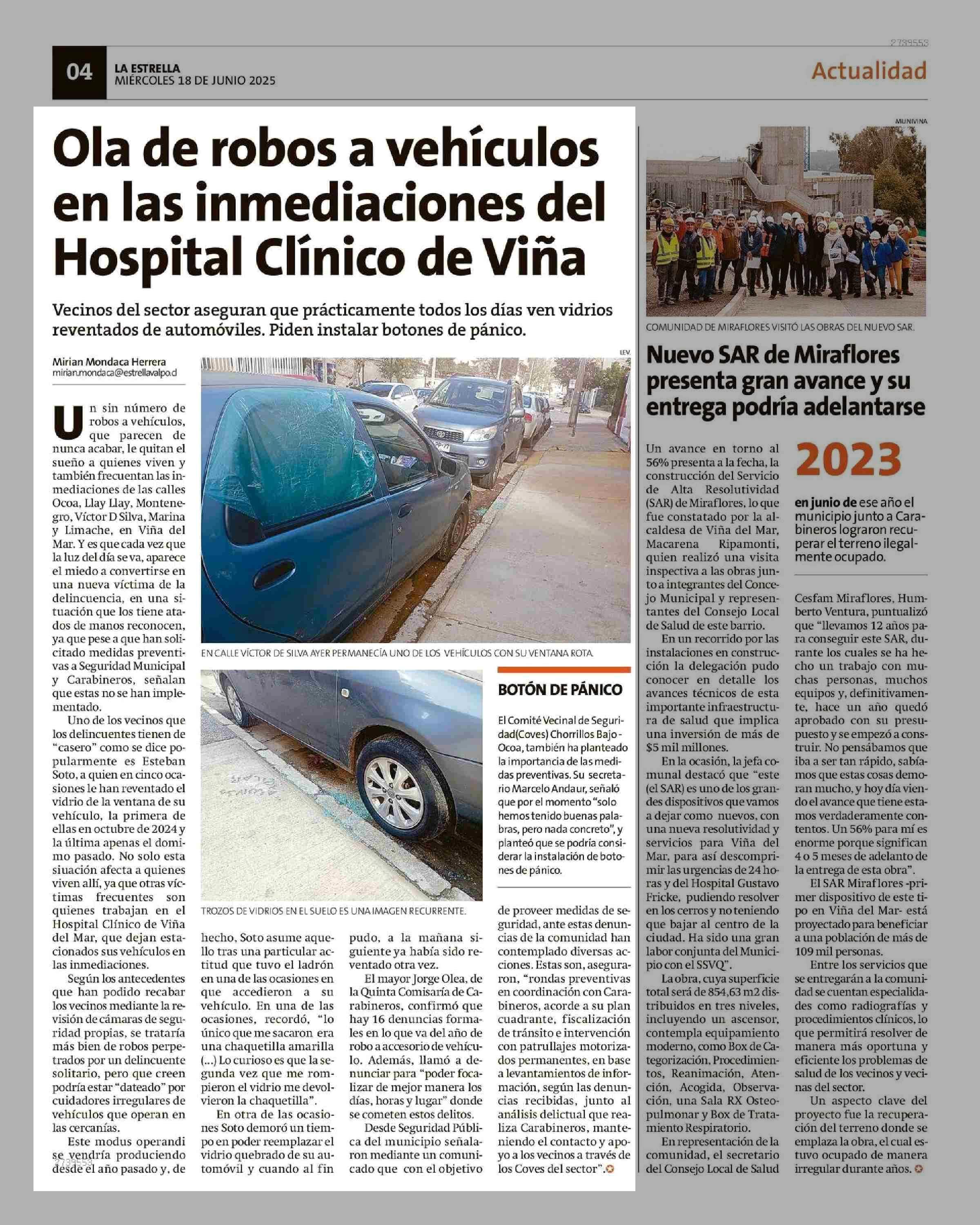 Ola de robos a vehículos en las inmediaciones del Hospital Clínico de Viña 18-06-2025 La Estrella de Valparaíso |