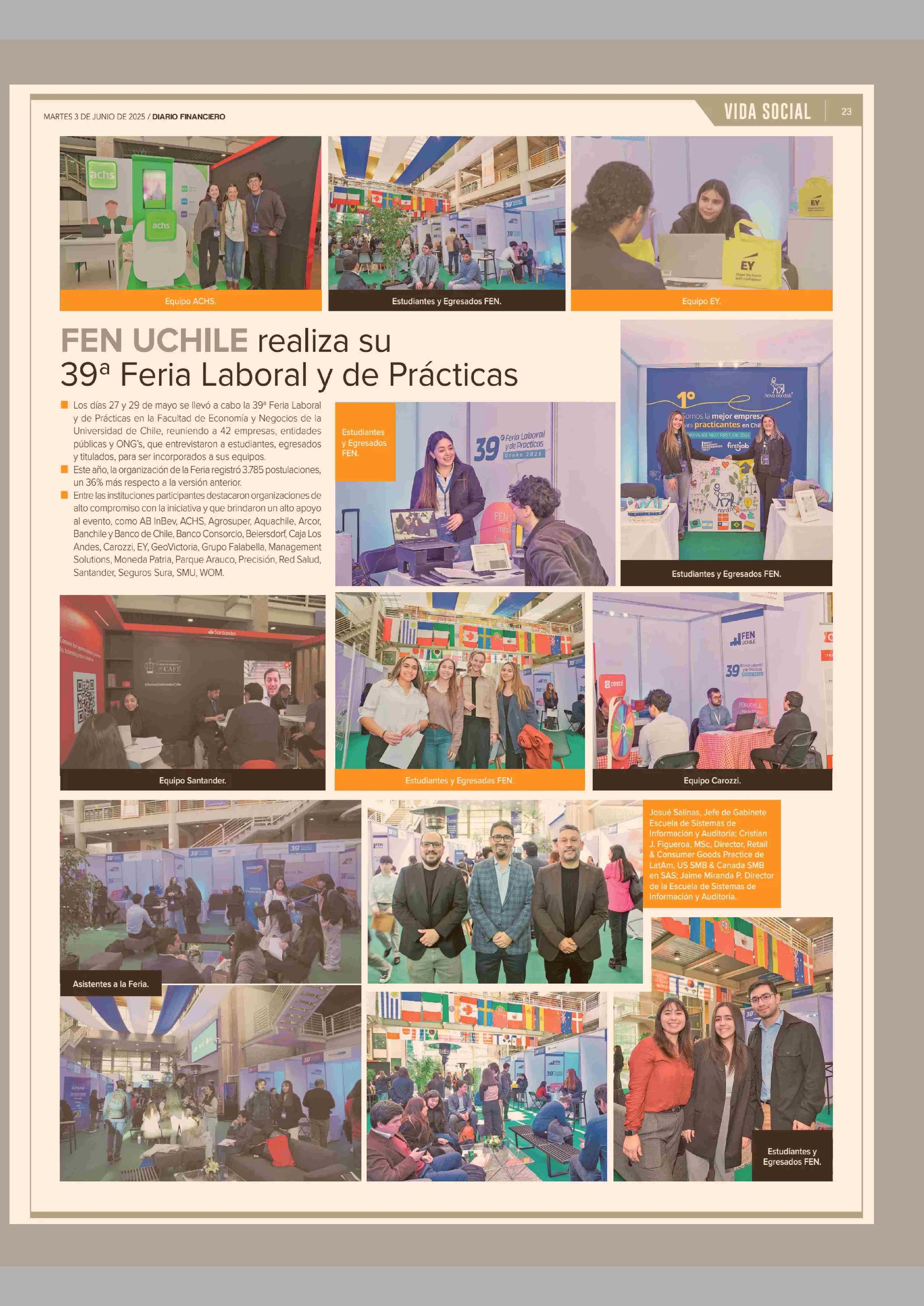 FEN UCHILE realiza su 39° Feria Laboral y de Prácticas 03-06-2025 Diario Financiero |