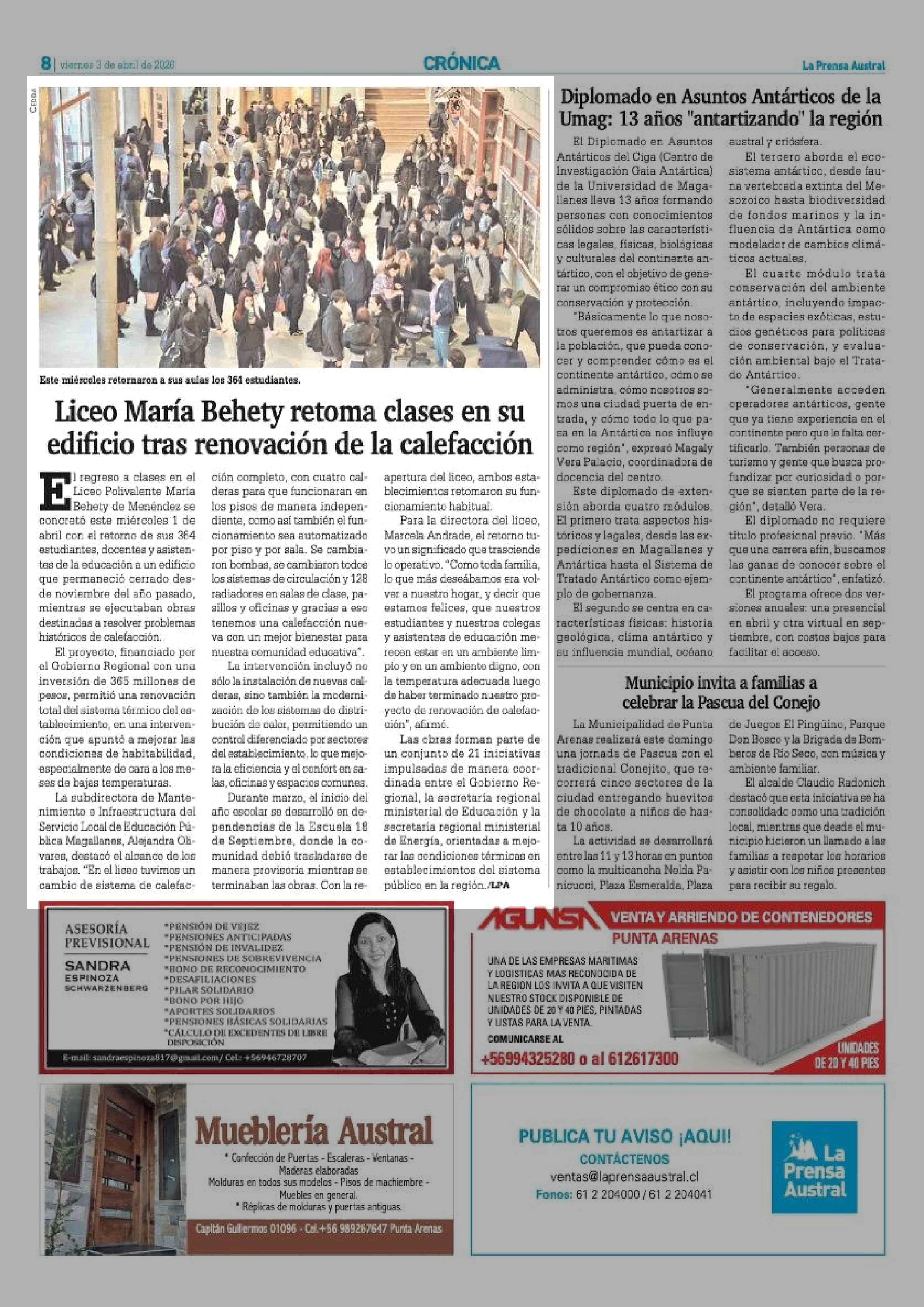 Fecha: 03-04-2026 Sector: Noticia general Región: Región de Magallanes y de la Antártica Chilena