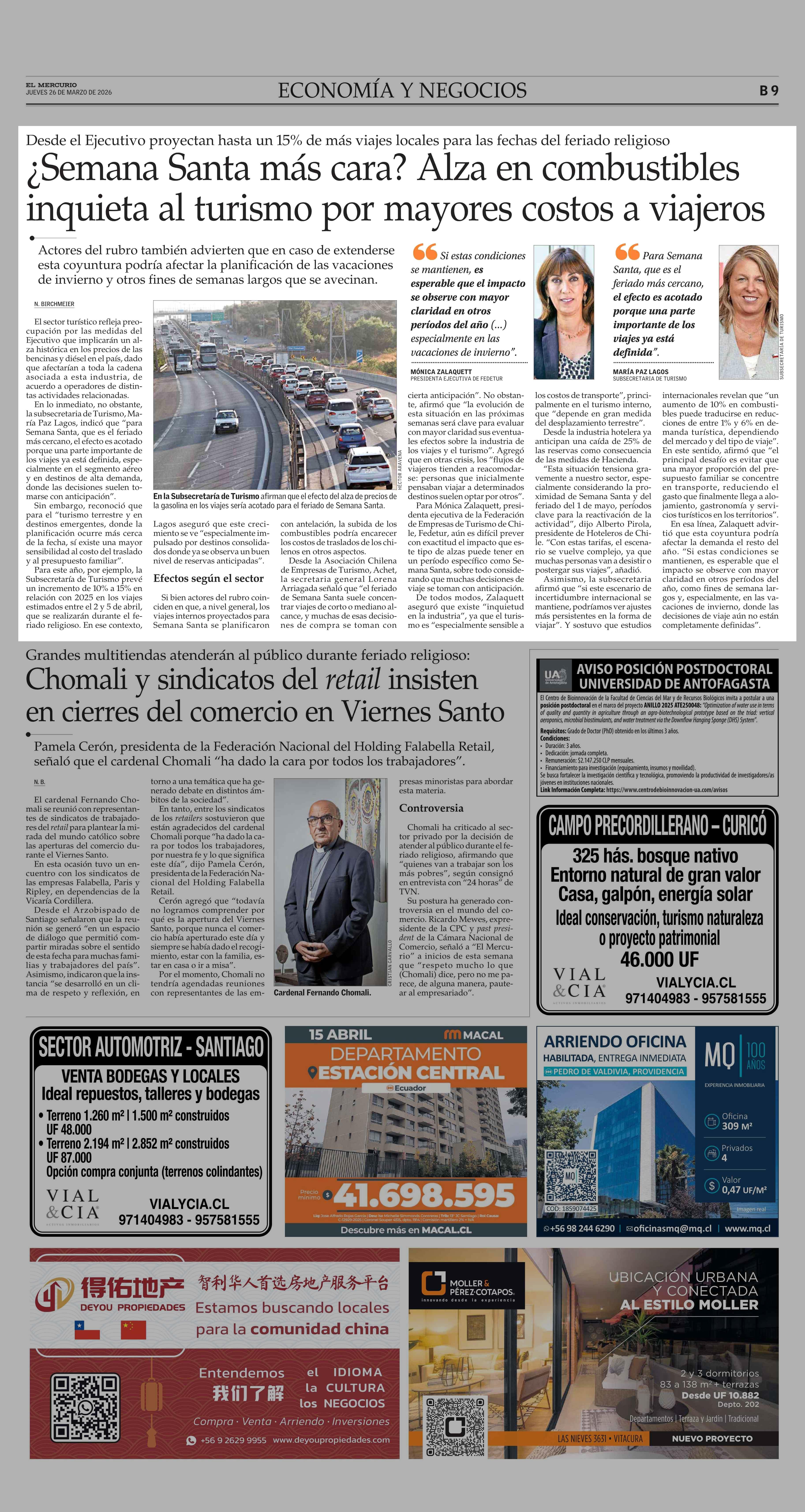 ¿Semana Santa más cara? Alza en combustibles inquieta al turismo por mayores costos a viajeros 26-03-2026 El Mercurio |
