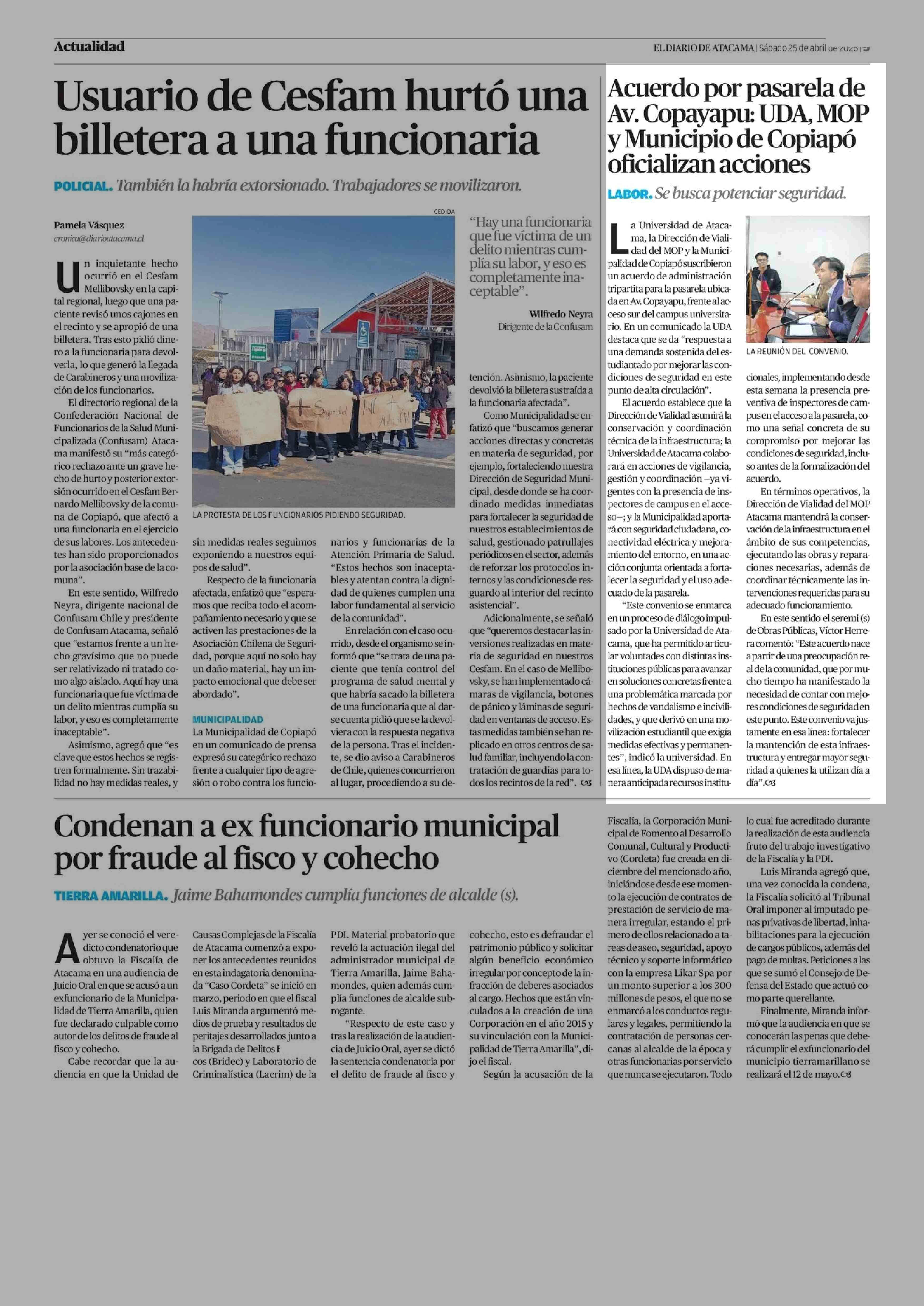Acuerdo por pasarela de Av. Copayapu: UDA, MOP y Municipio de Copiapó oficializan acciones 25-04-2026 El Diario de Atacama |