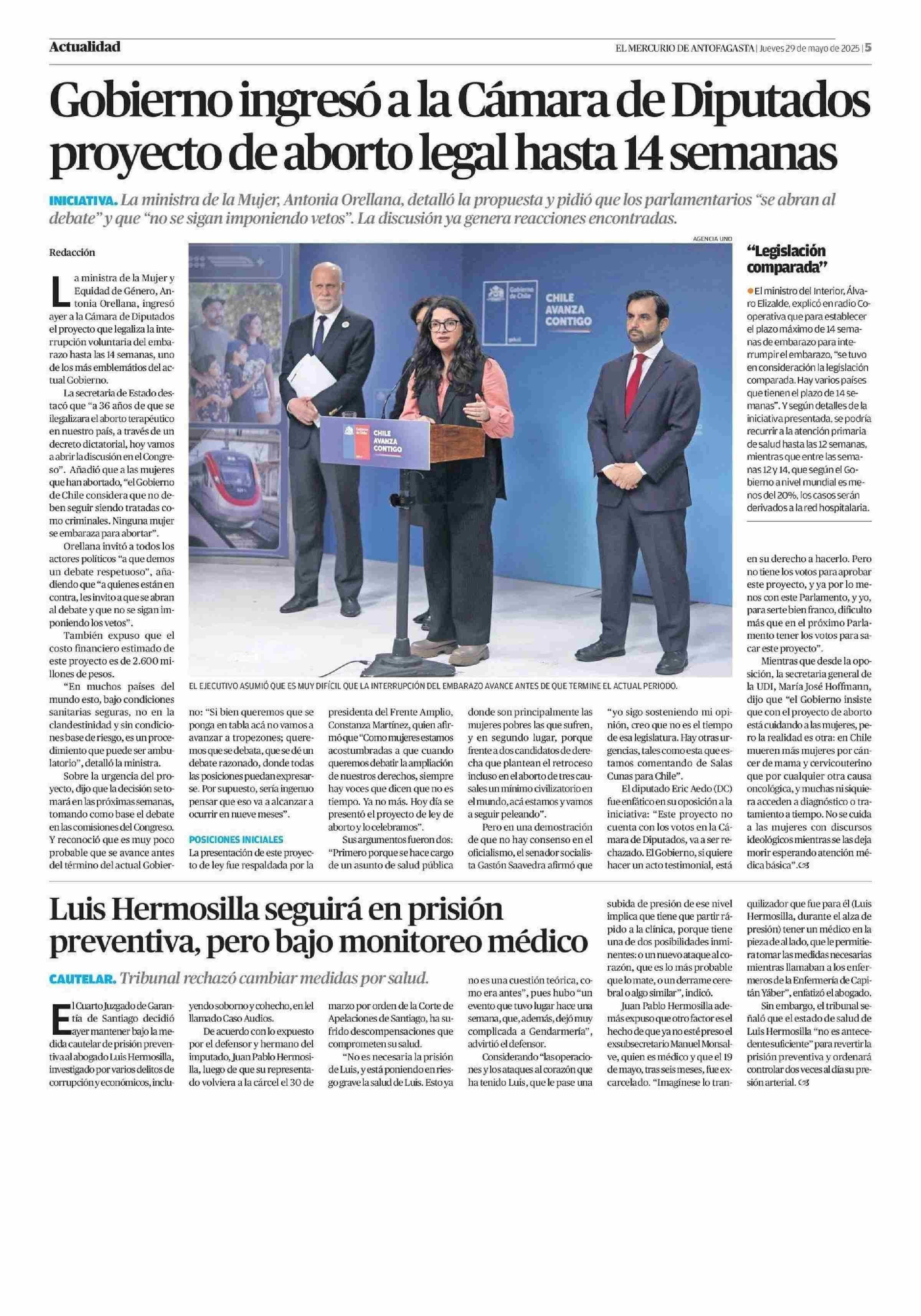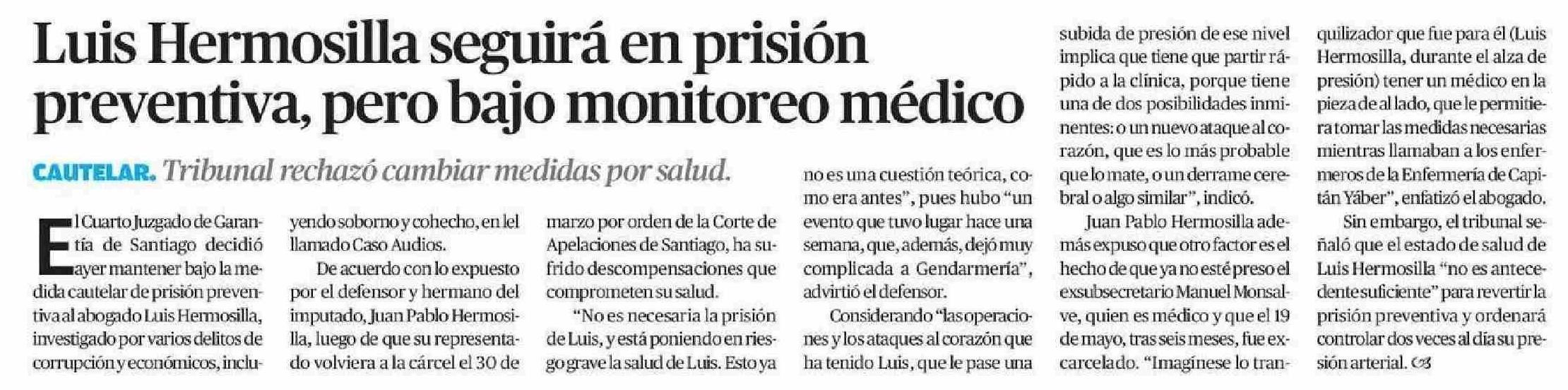 Luis Hermosilla seguirá en prisión preventiva, pero bajo monitoreo médico 29-05-2025 El Mercurio de Antofagasta |