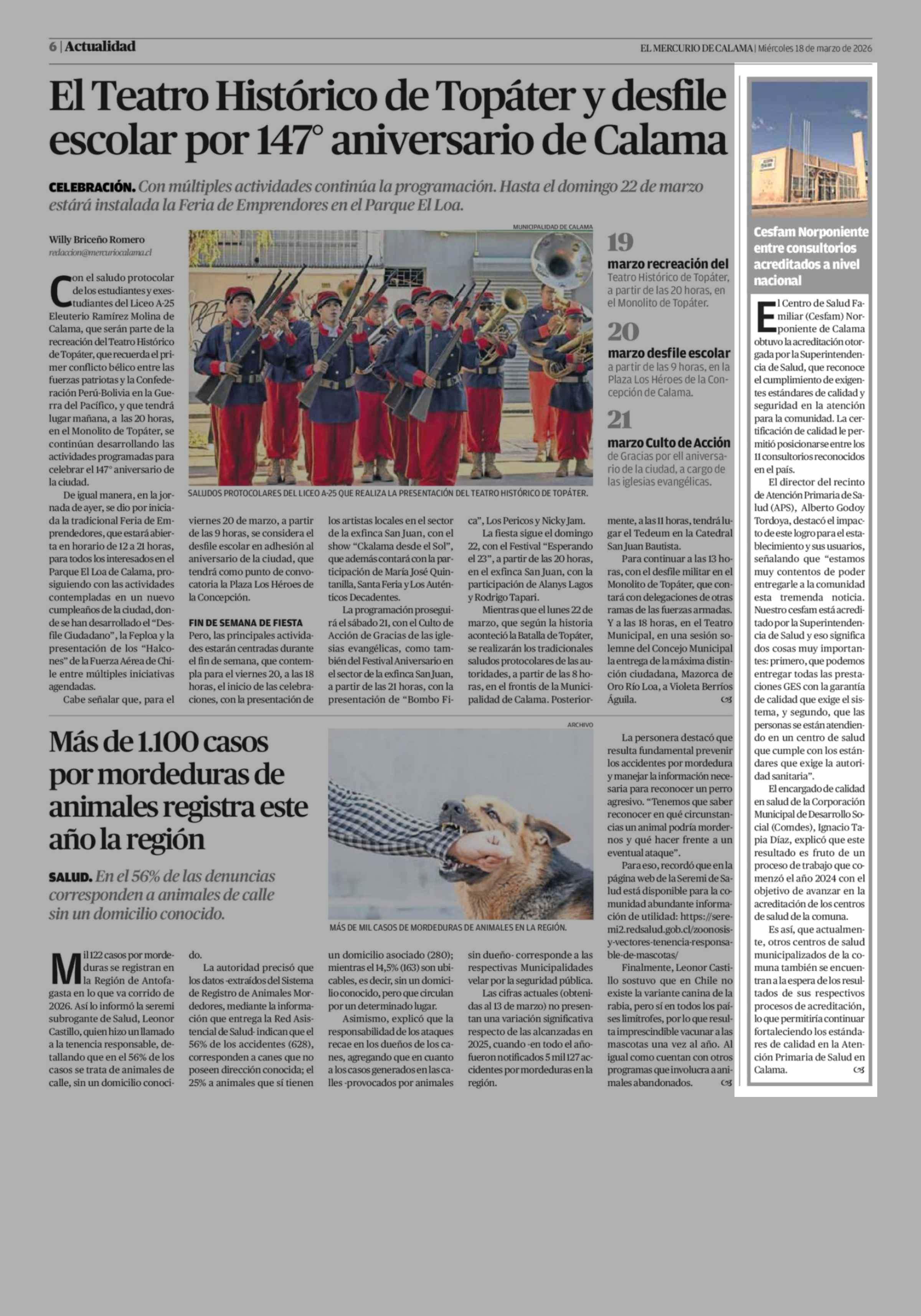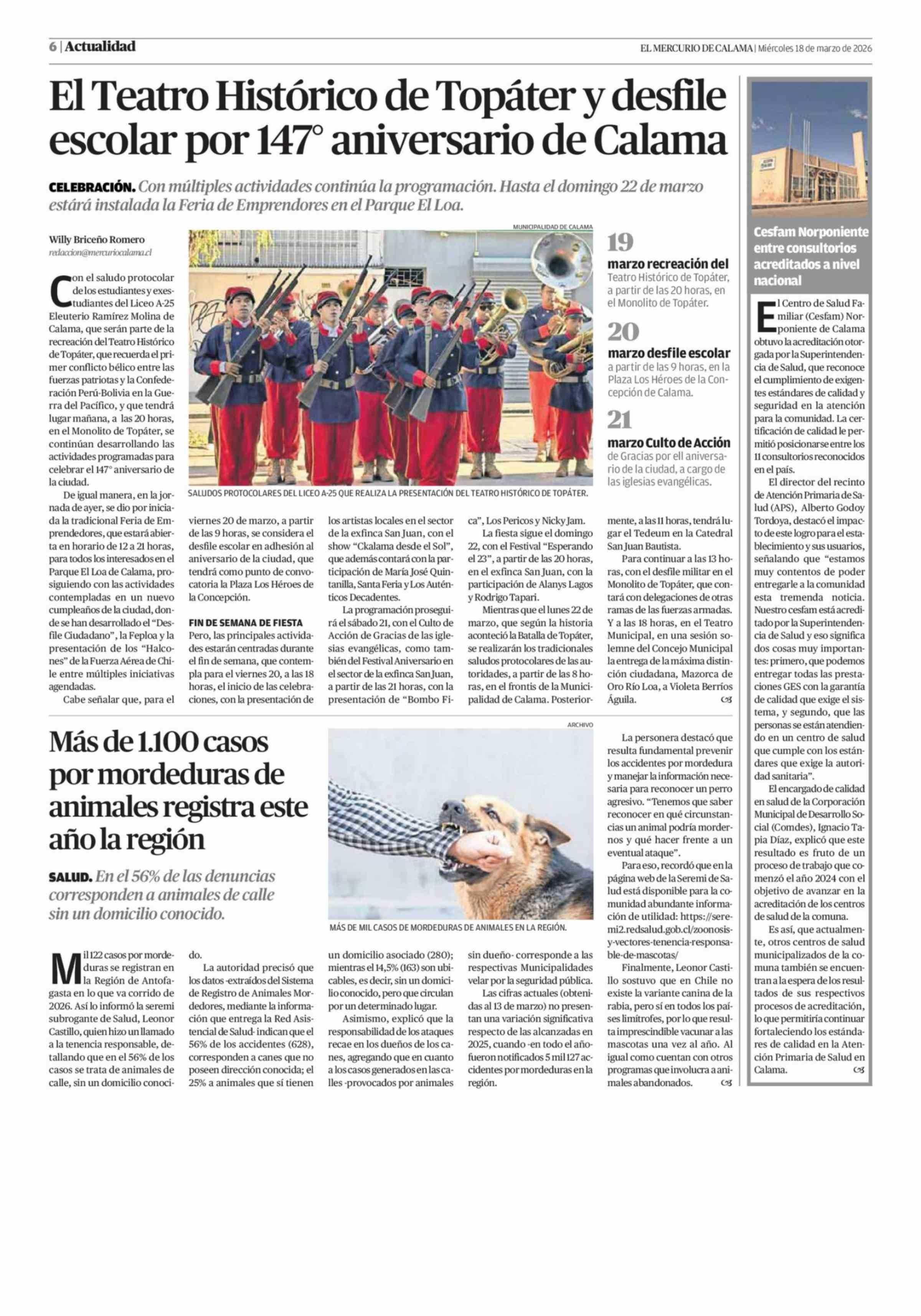 Fecha: 18-03-2026 Sector: Noticia general Región: Región de Antofagasta