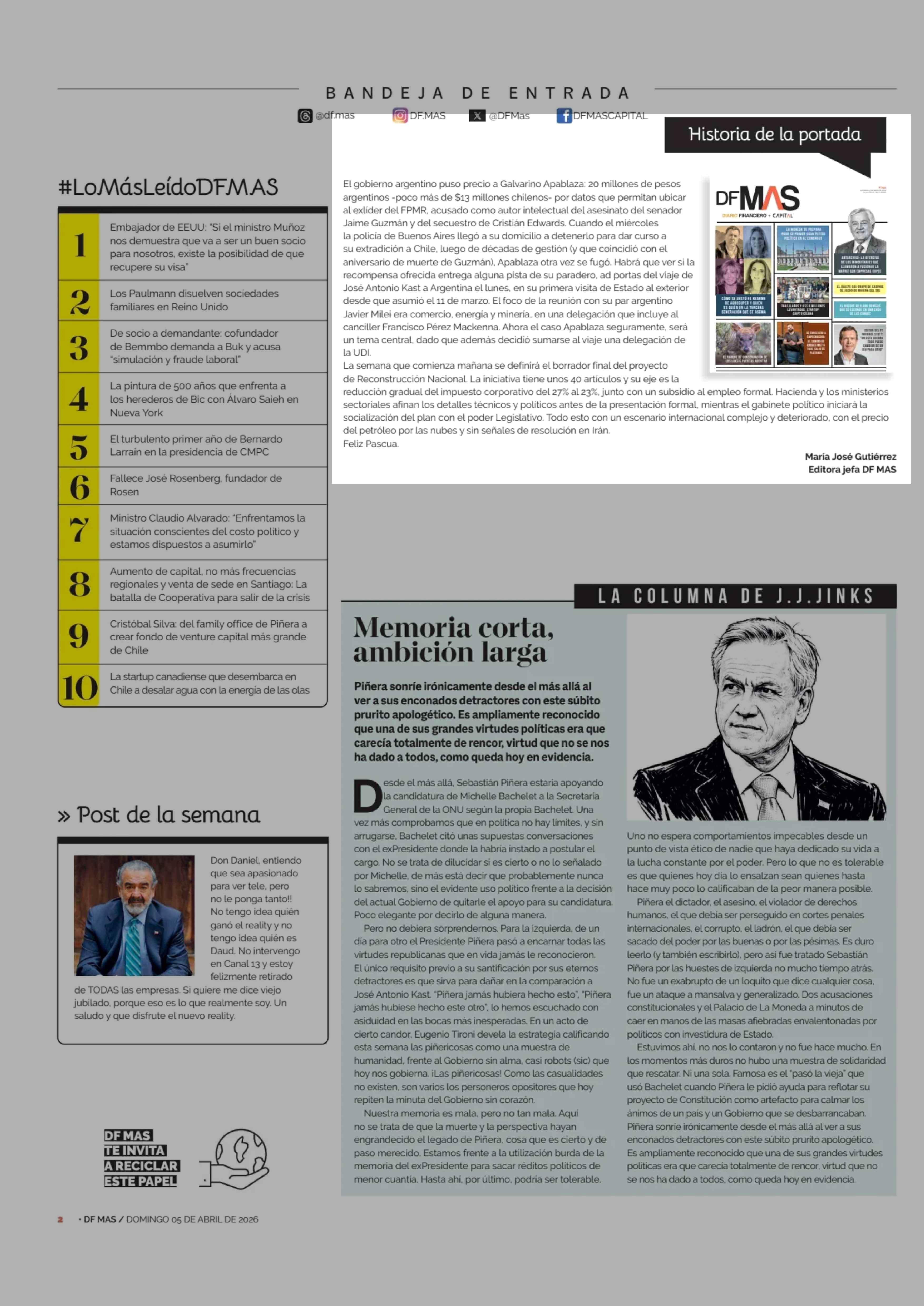 Editorial: Historia de la portada 05-04-2026 Diario Financiero |