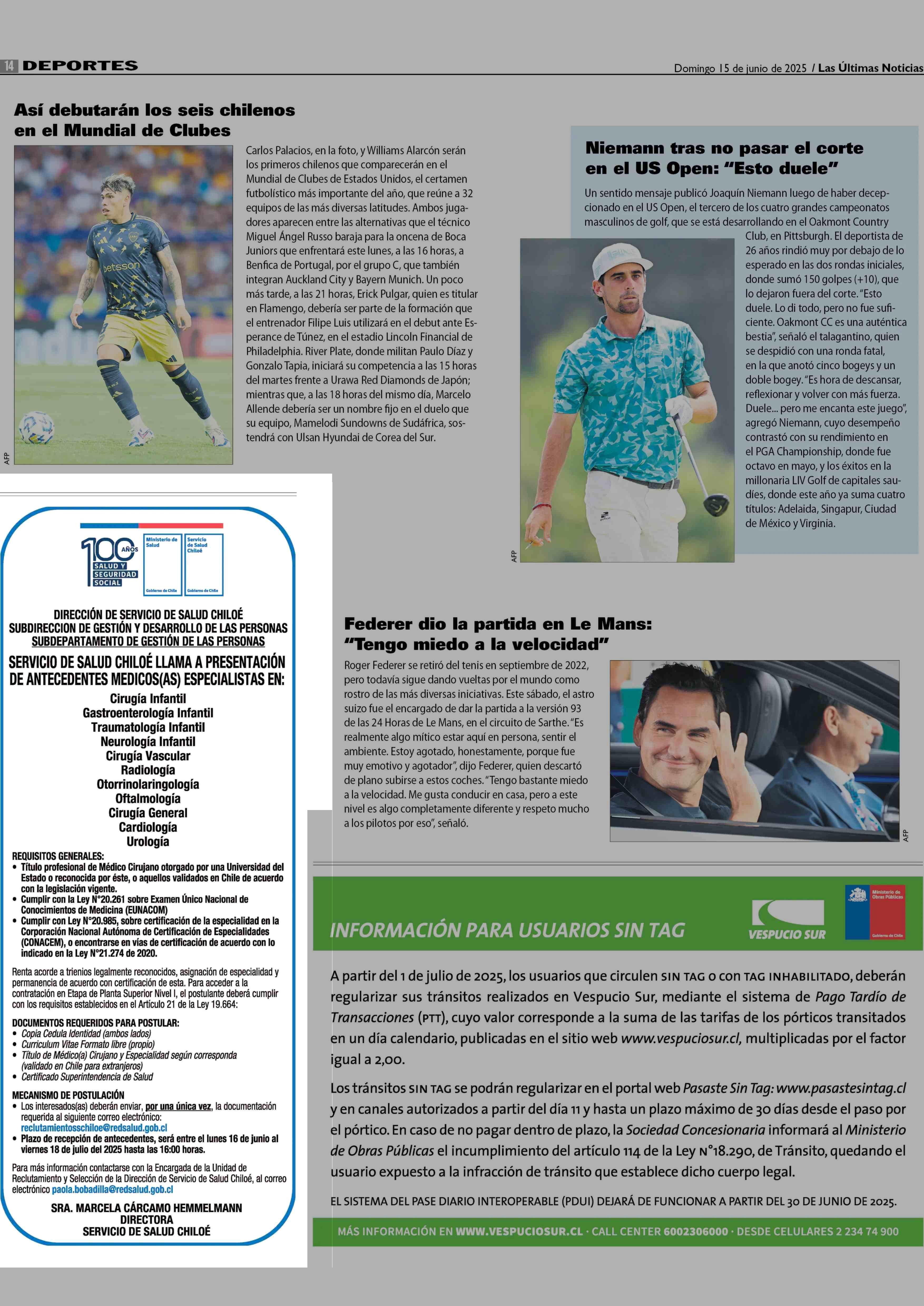 SERVICIO DE SALUD CHILOÉ LLAMA A PRESENTACIÓN DE ANTECEDENTES MEDICOS(AS) ESPECIALISTAS EN: 15-06-2025 Las Últimas Noticias |