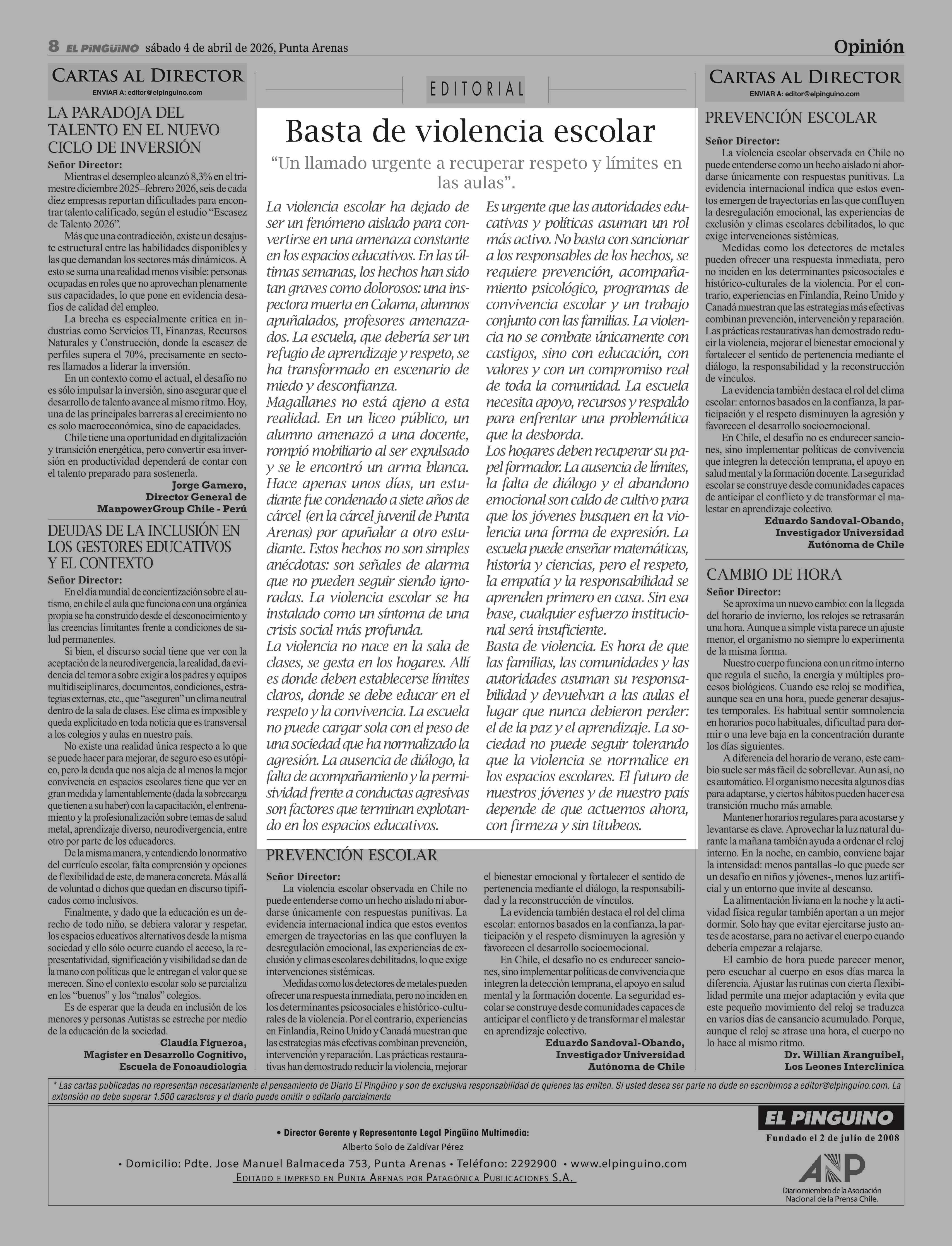 Editorial: Basta de violencia escolar 04-04-2026 El Pingüino |