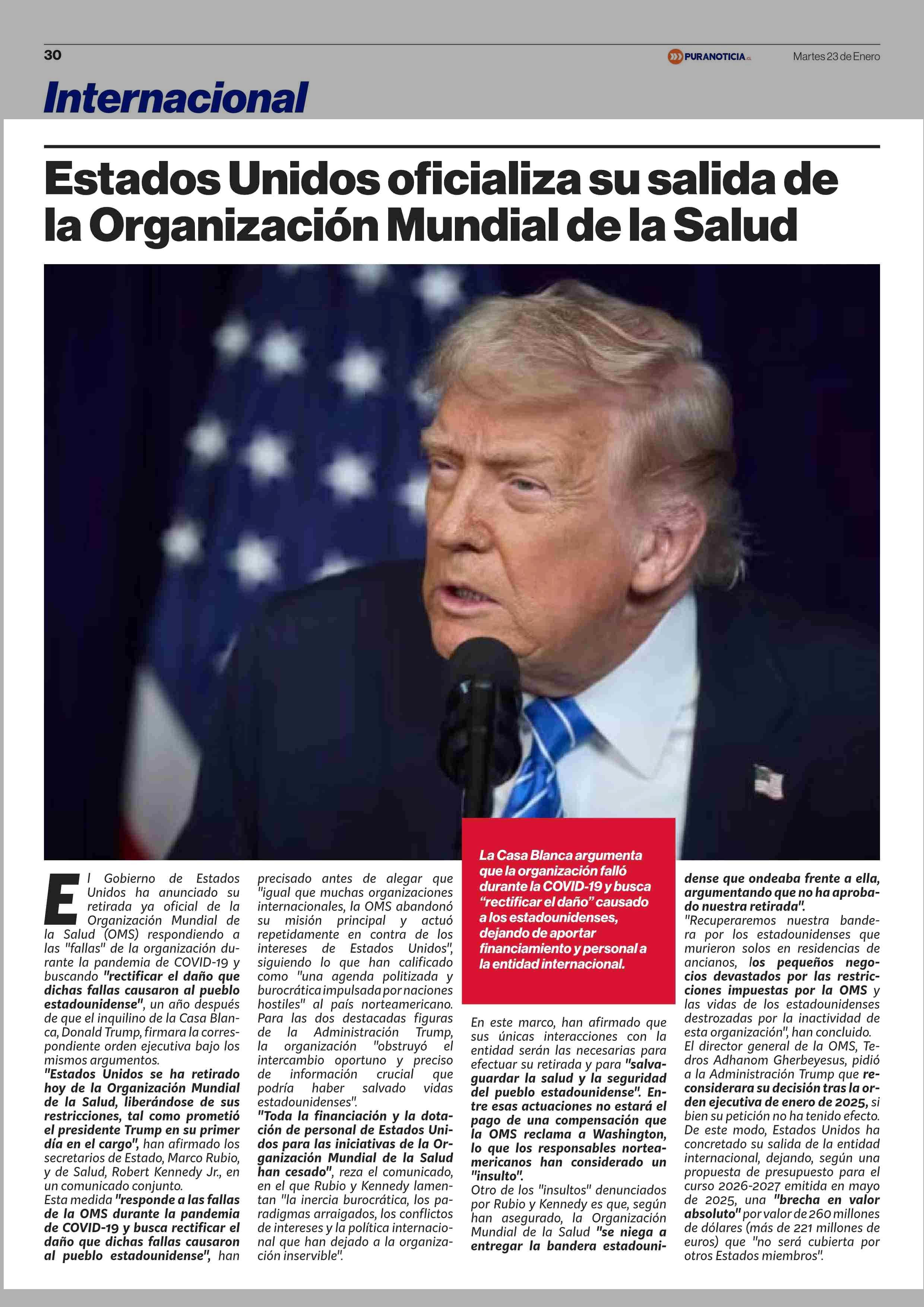Estados Unidos oficializa su salida de la Organización Mundial de la Salud 23-01-2026 Puranoticia.cl |