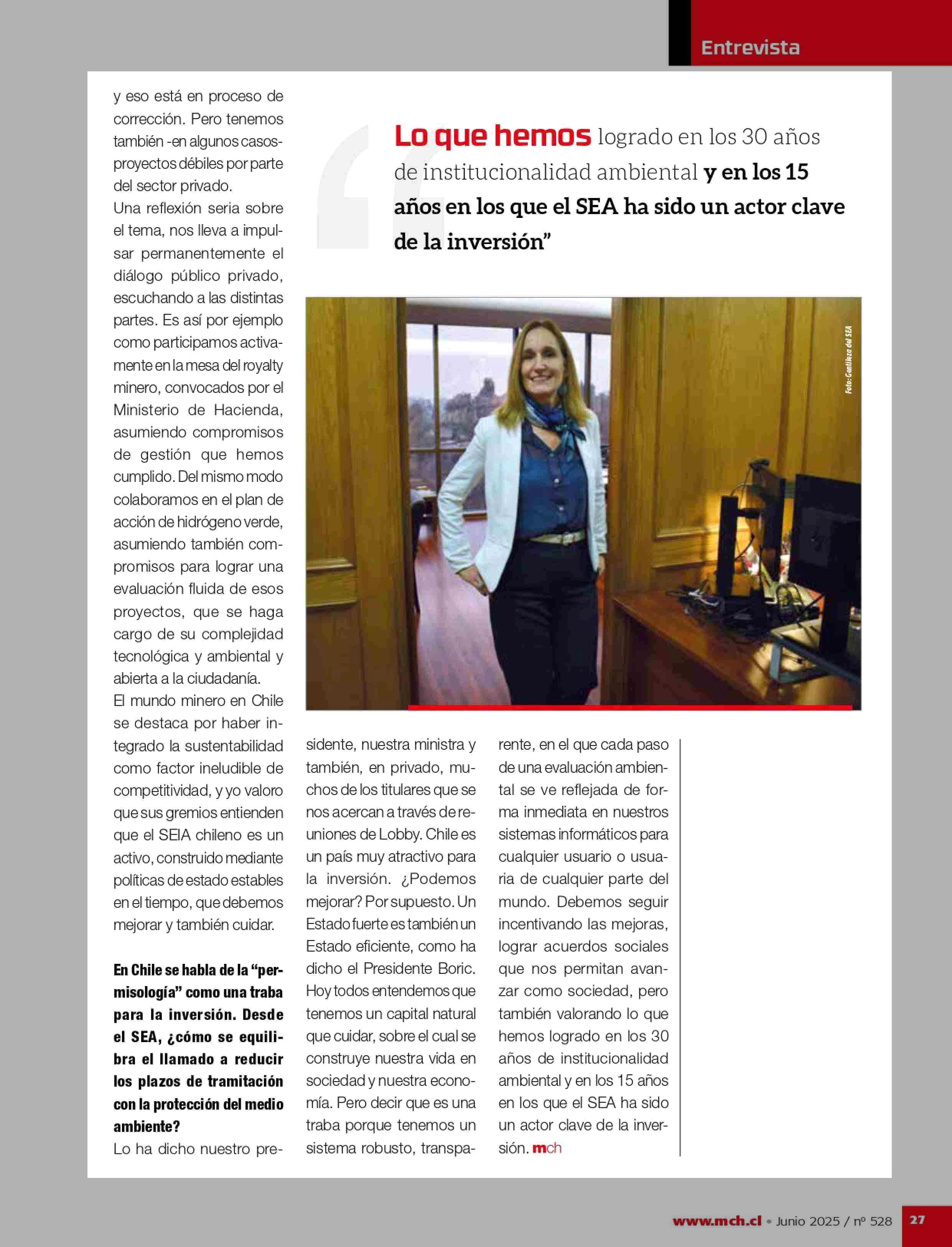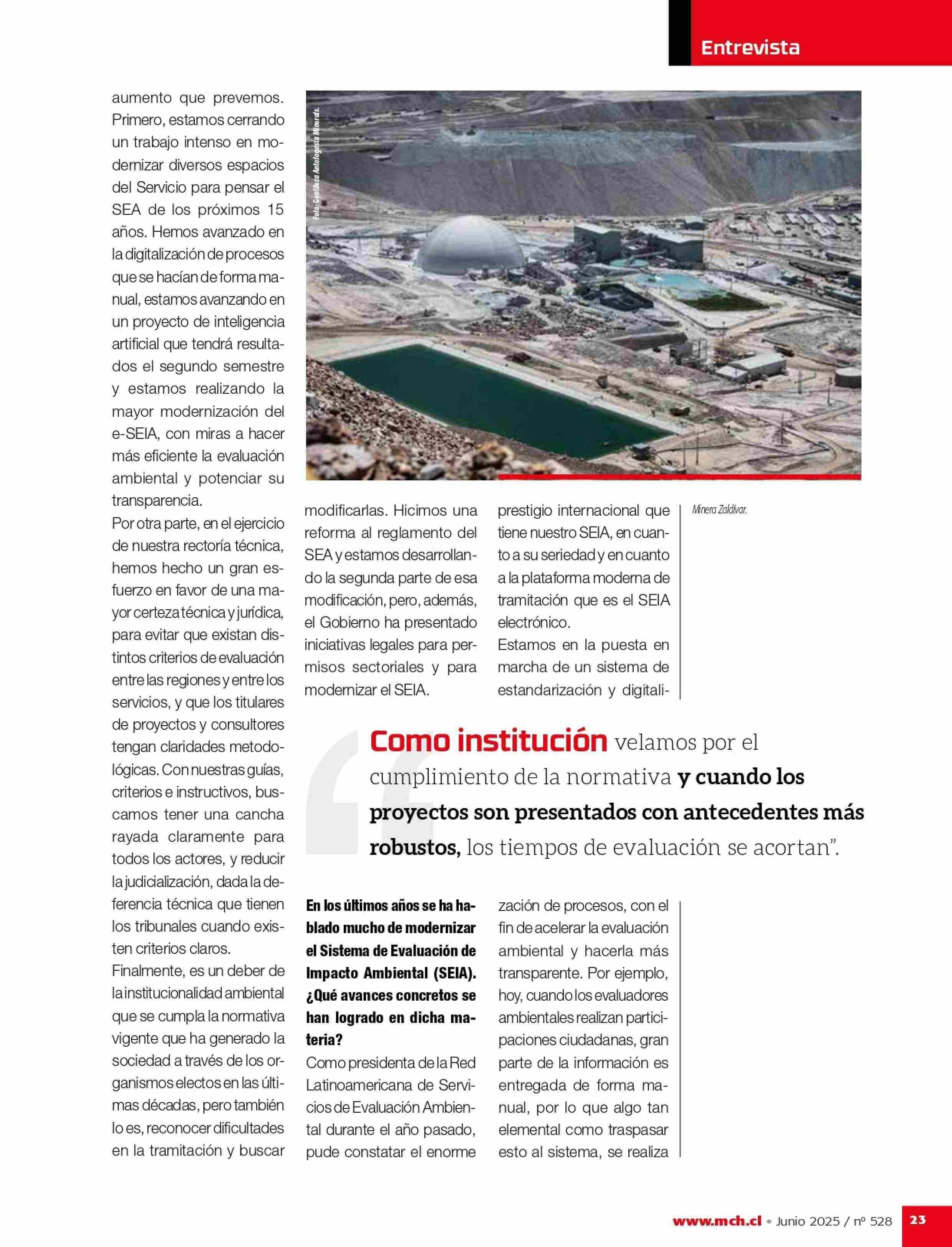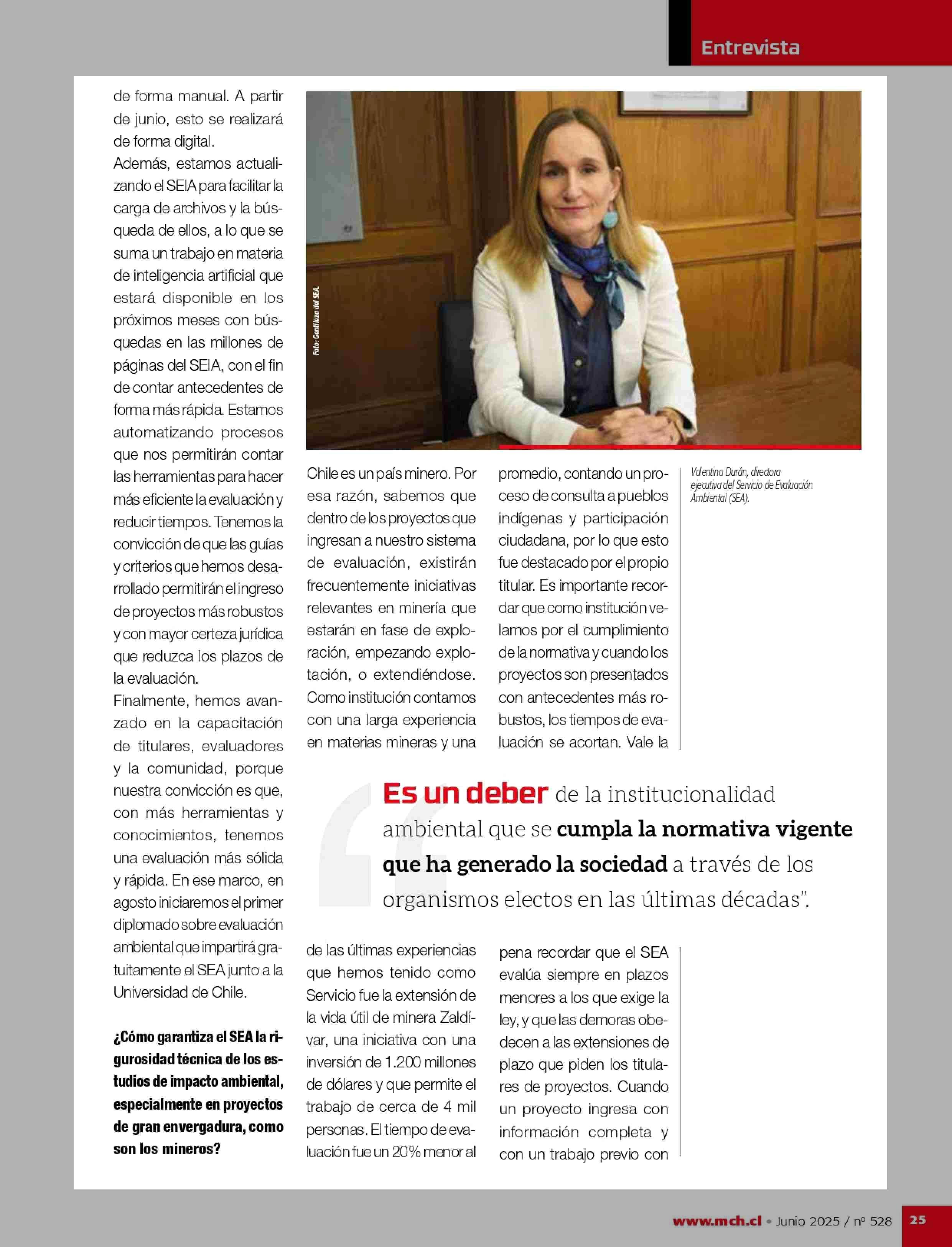 "Ingresaron eproyectos por más de US$71 mil millones al SEIA, lo que es una cifra histórica" 25-06-2025 Revista Minería Chilena |