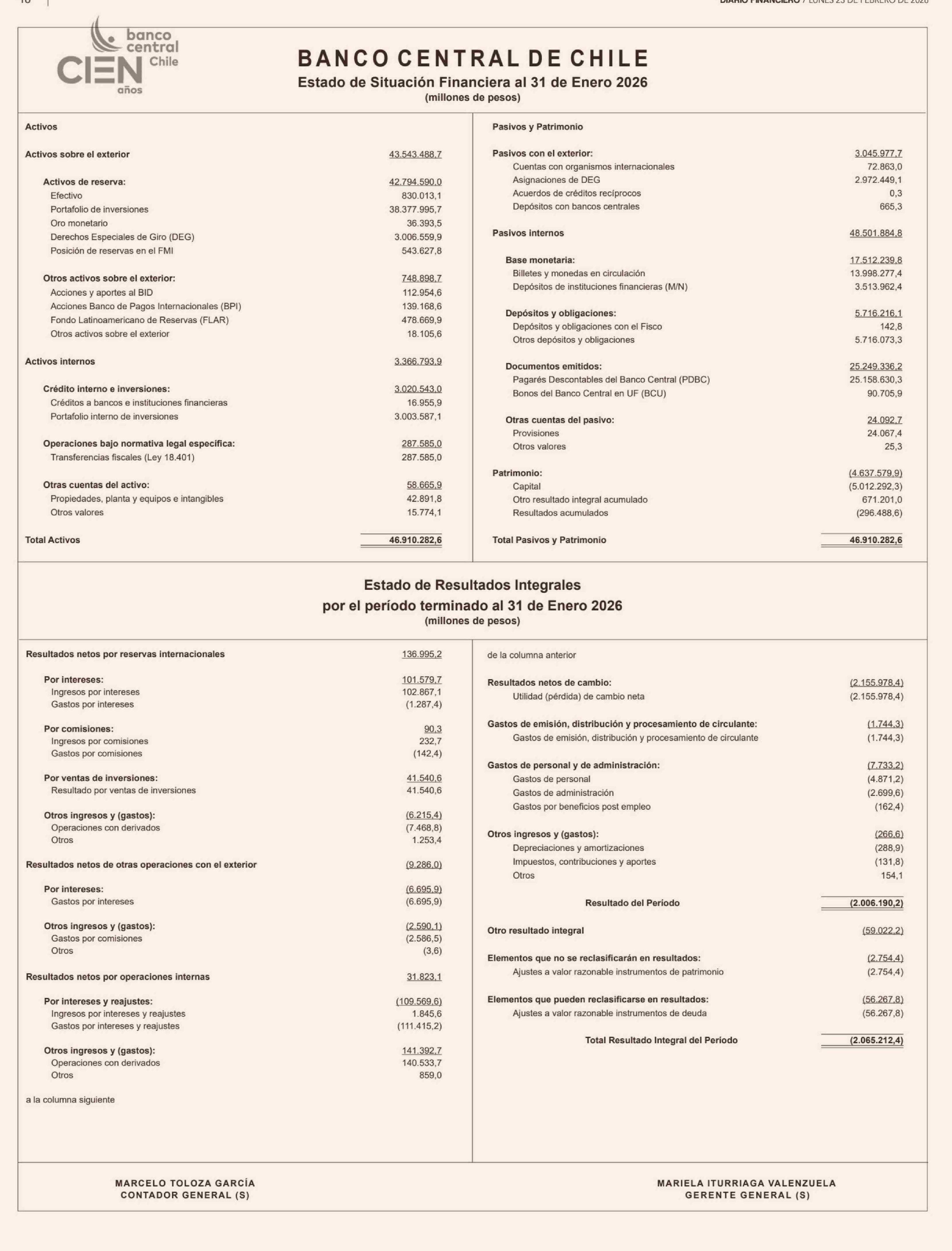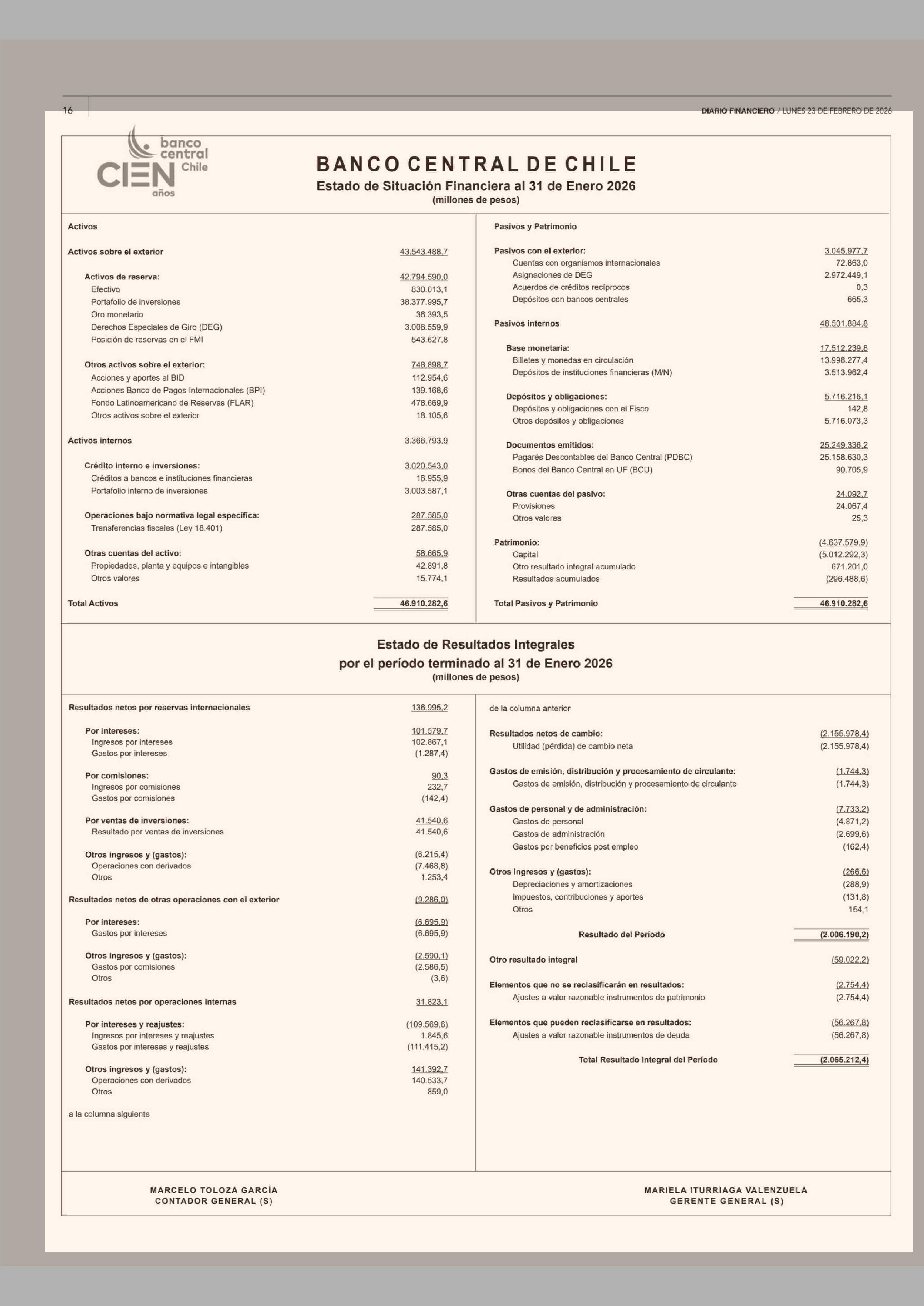 Extractos: BANCO CENTRAL DE CHILE 23-02-2026 Diario Financiero |